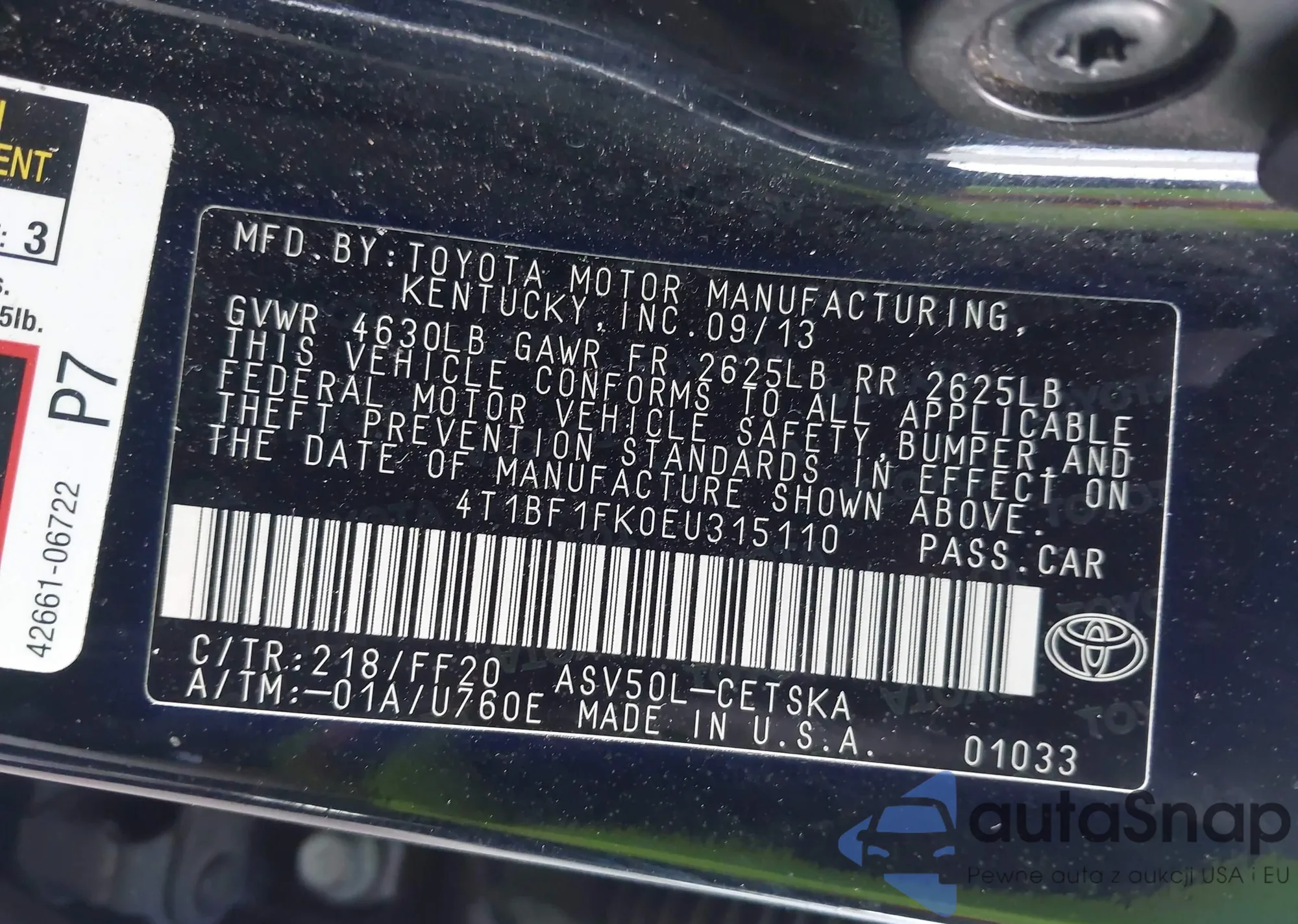 • VIN 4T1BF1FK0EU315110
