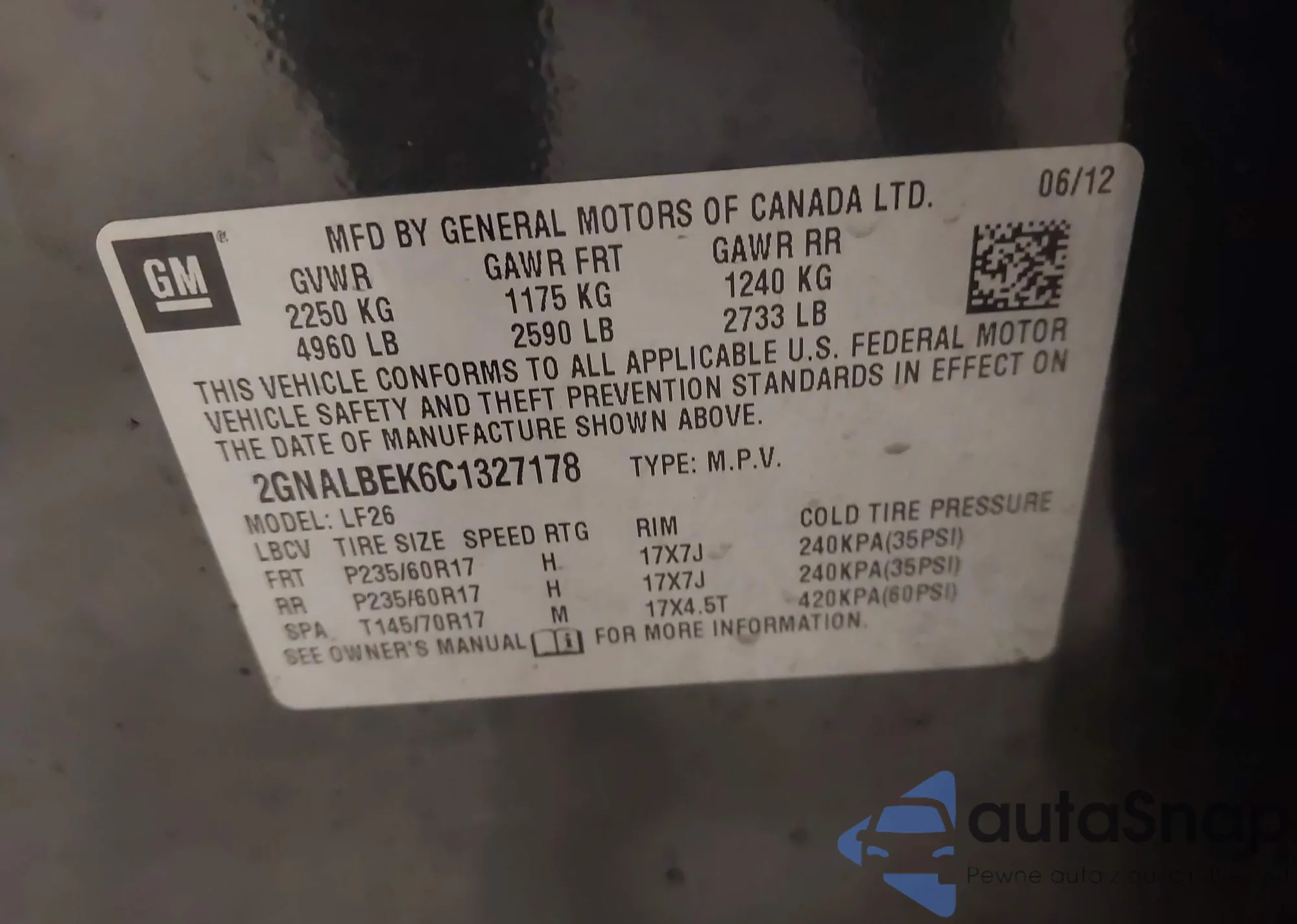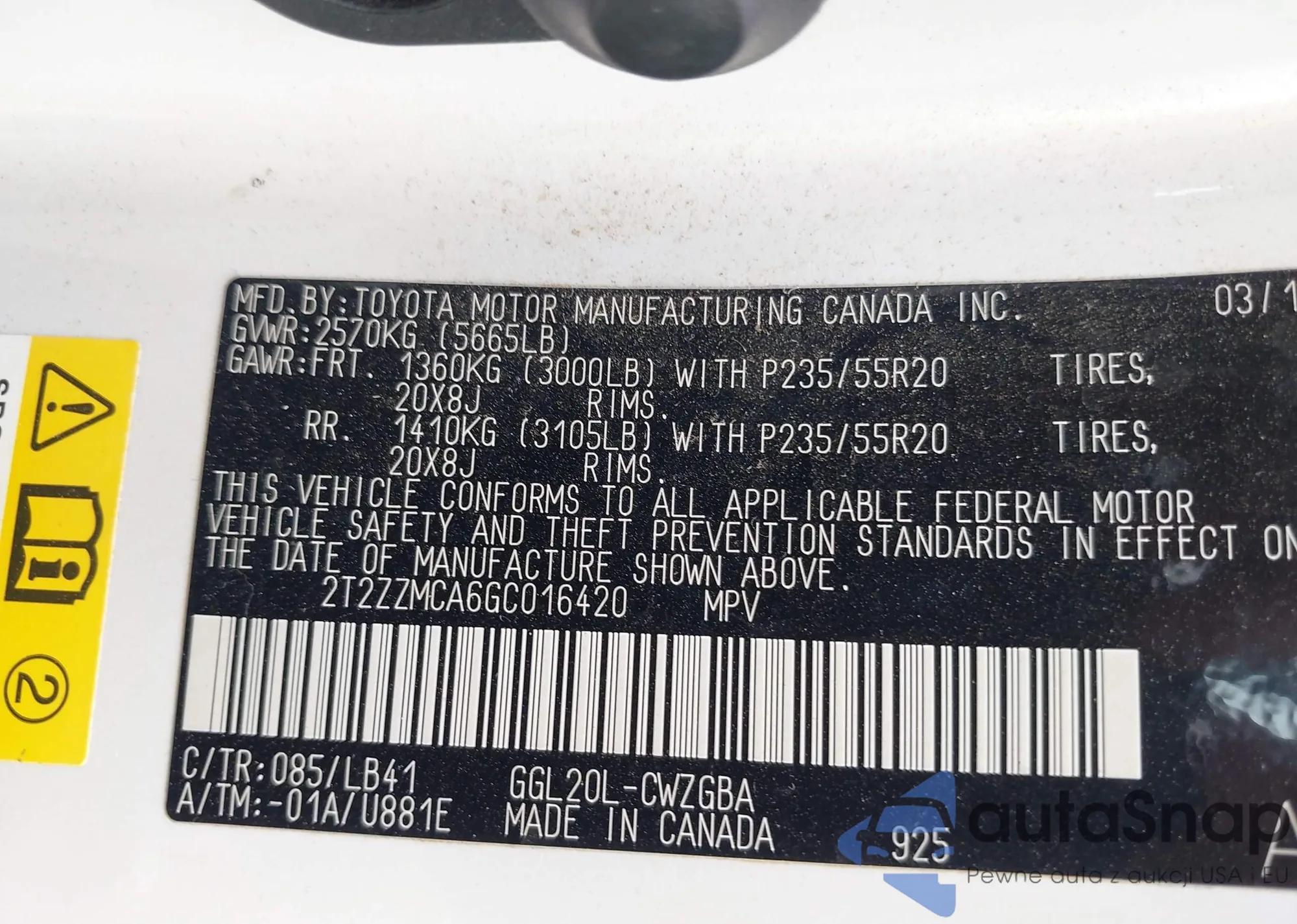 • VIN 2T2ZZMCA6GC016420