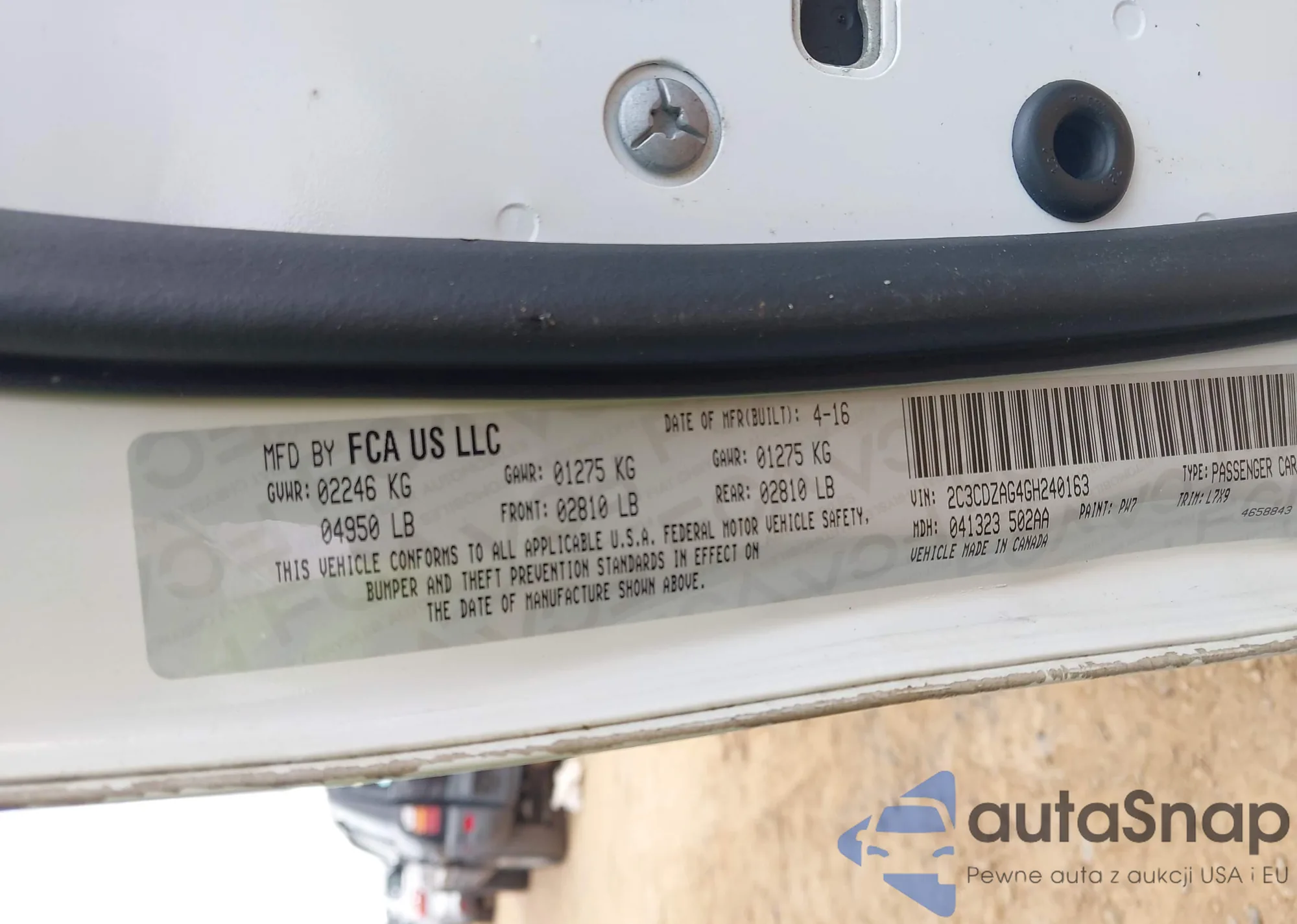 • VIN 2C3CDZAG4GH240163