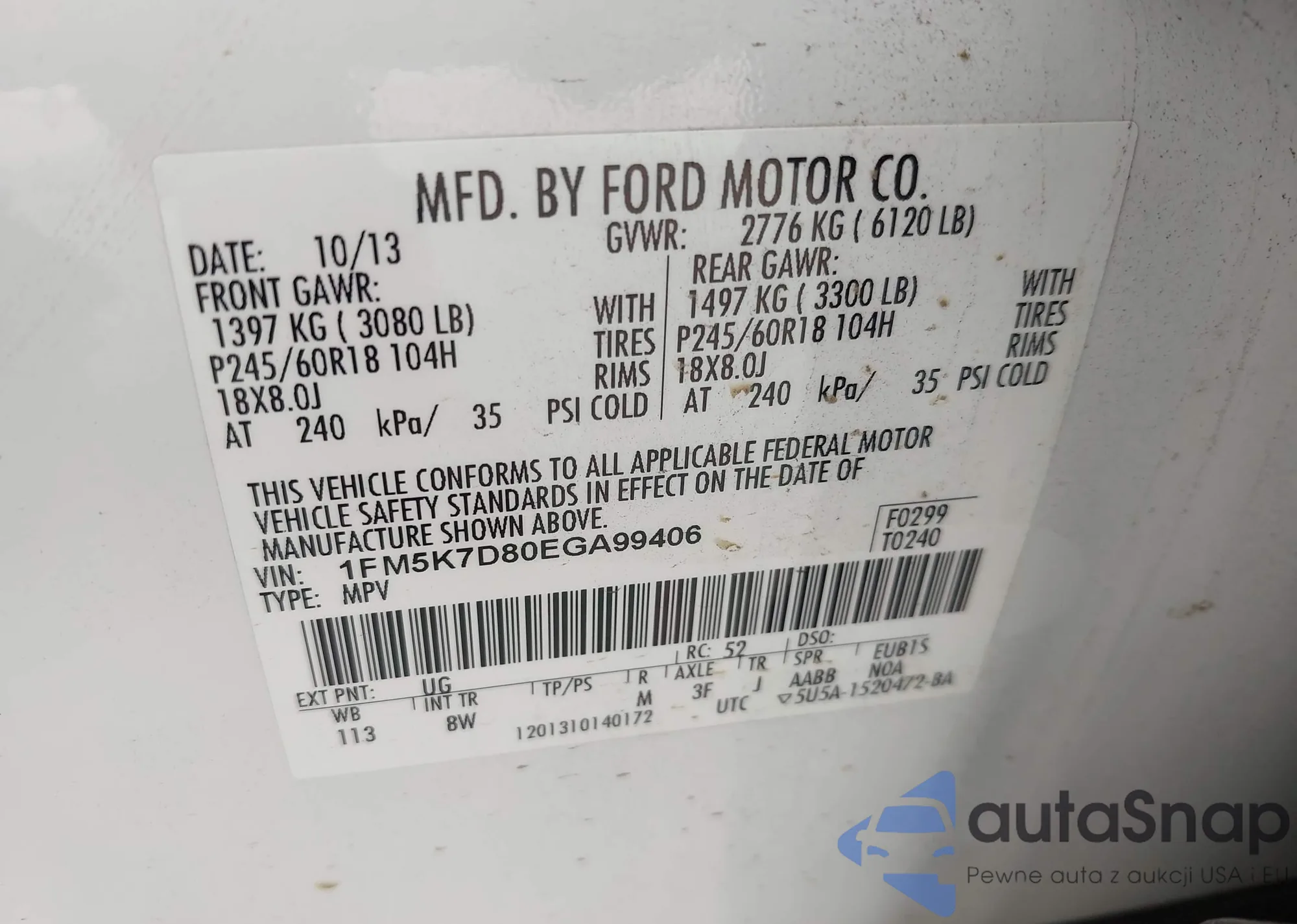 • VIN 1FADP3K24EL114477
