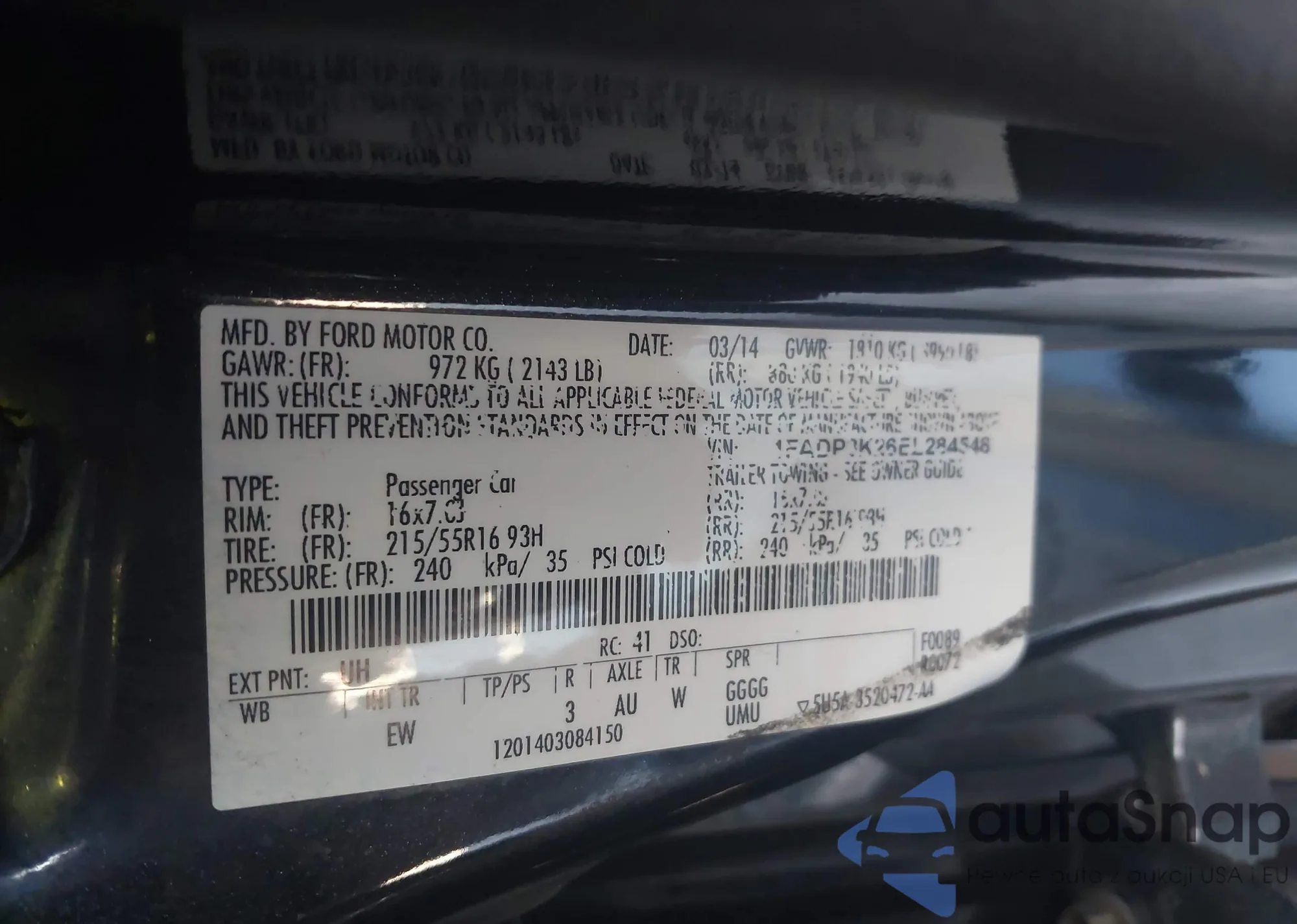 LOT: 43425954 VIN: 1FADP3K24EL114477
