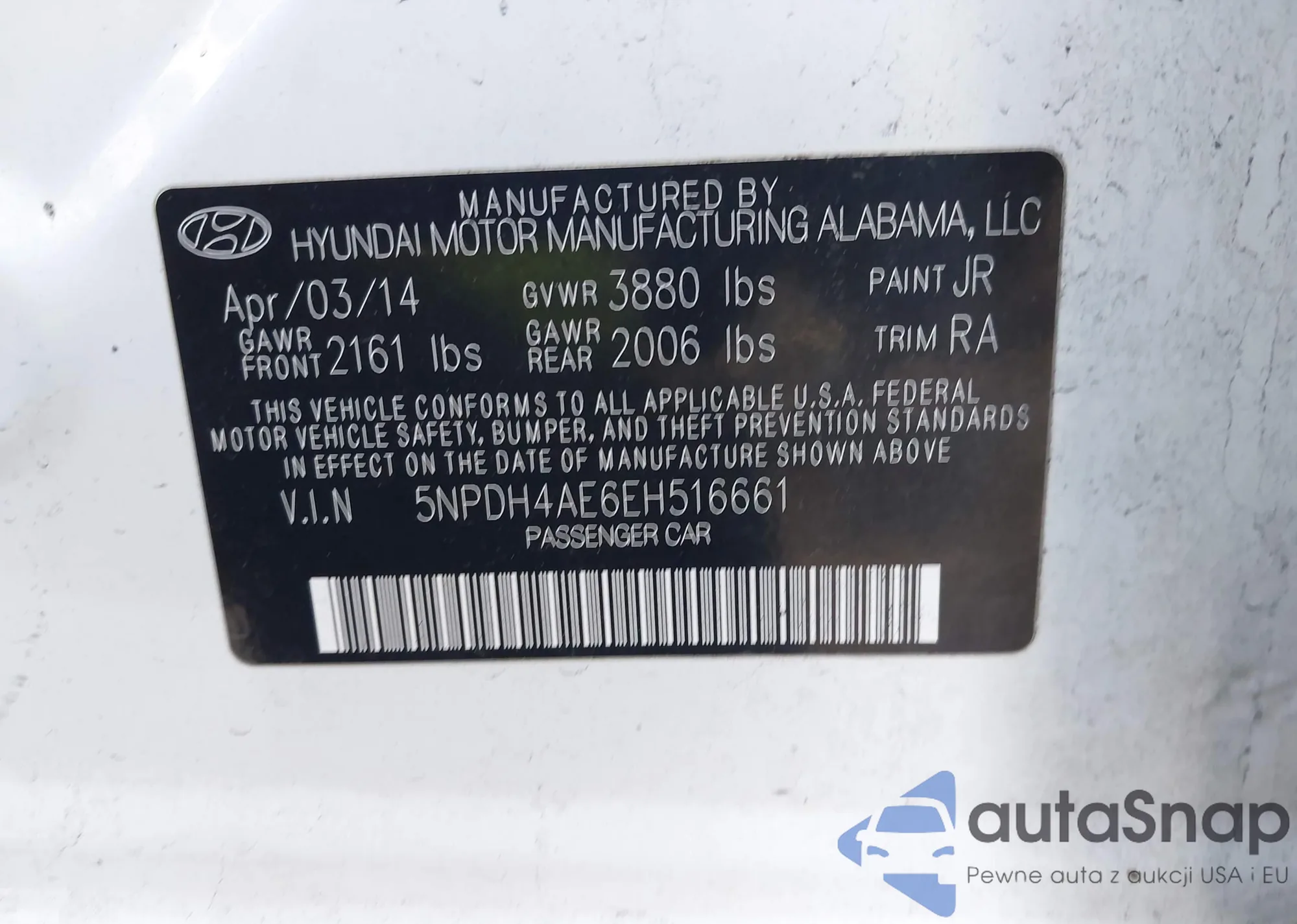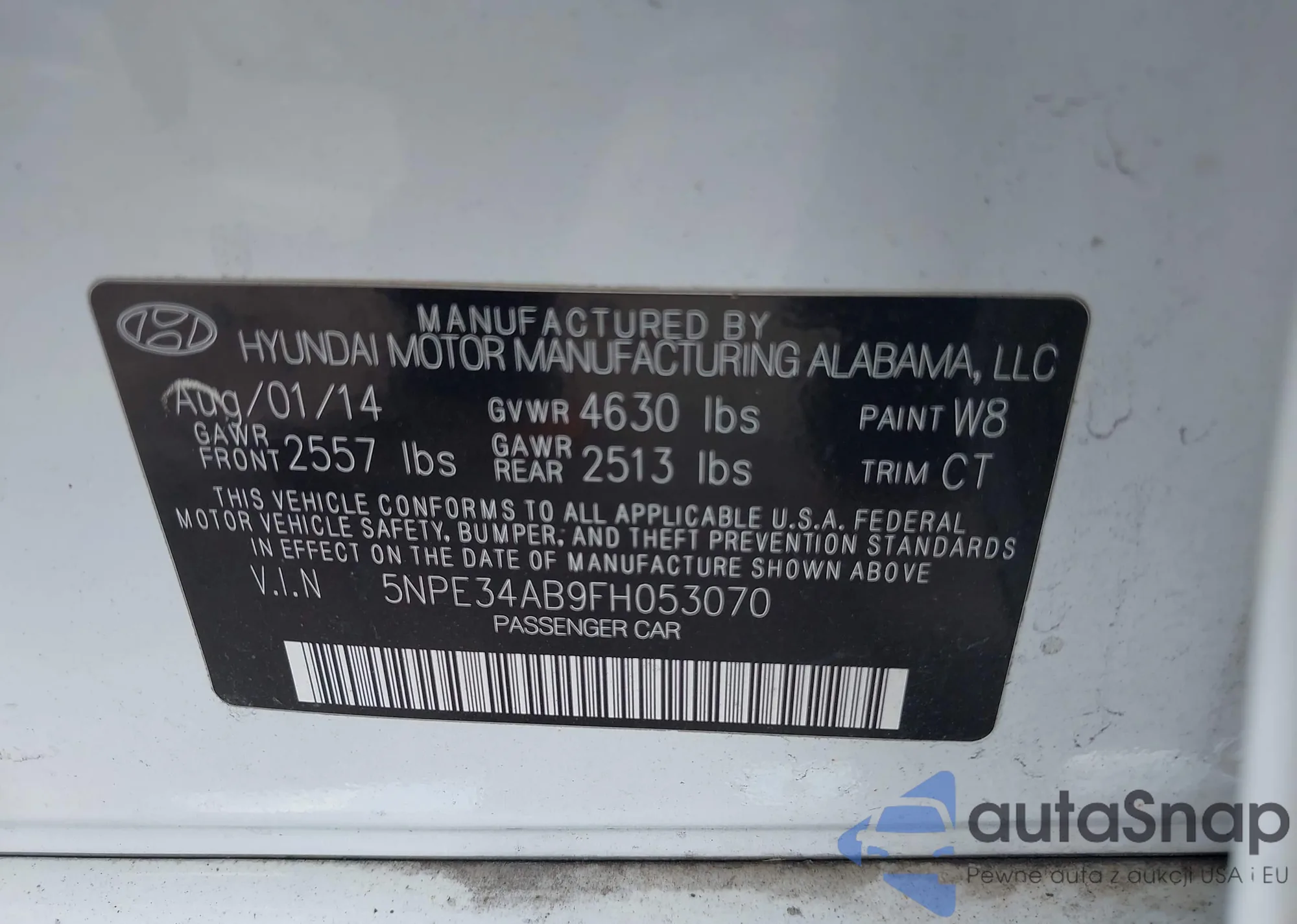 • VIN 5NPE34AB9FH053070