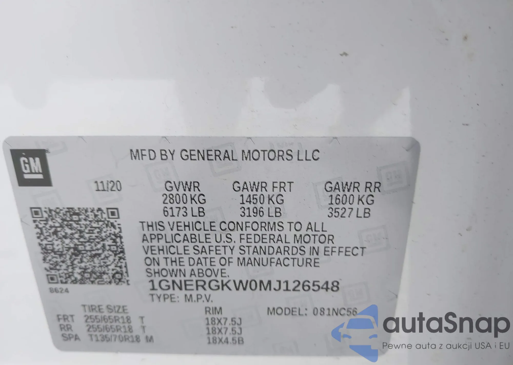 LOT: 42998904 VIN: 1GNERGKW0MJ126548