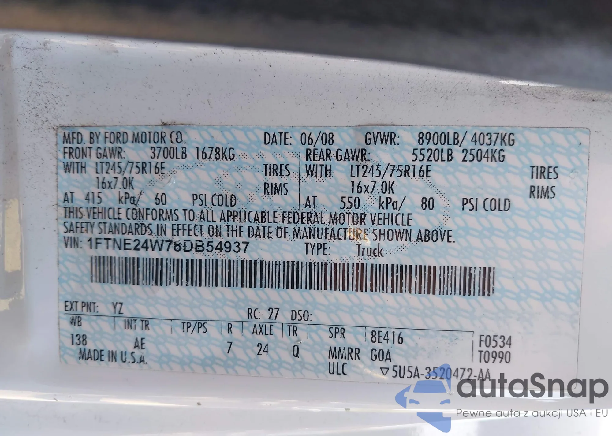 • VIN 1FTNE24W78DB54937