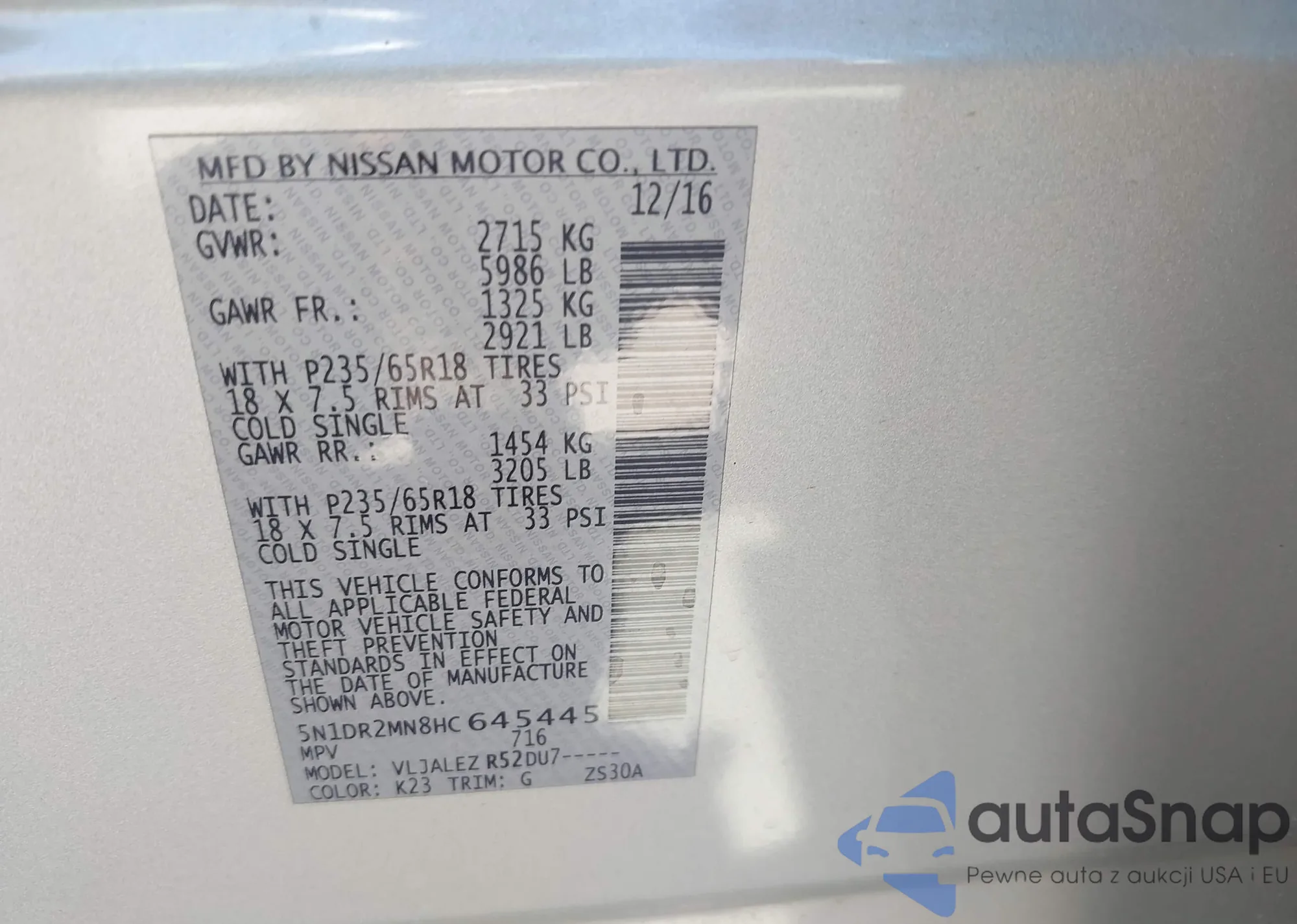 LOT: 43202007 VIN: 5N1AN08W76C517507
