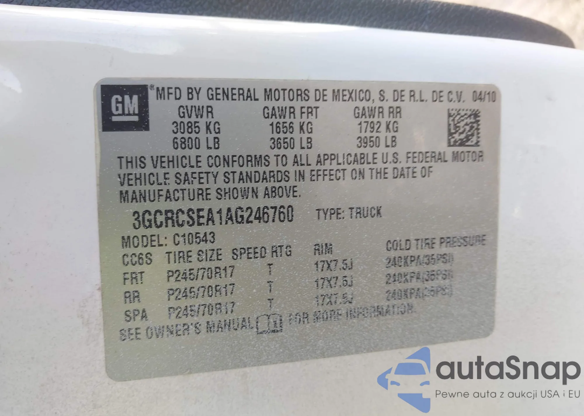 • VIN 3GCRCSEA1AG246760