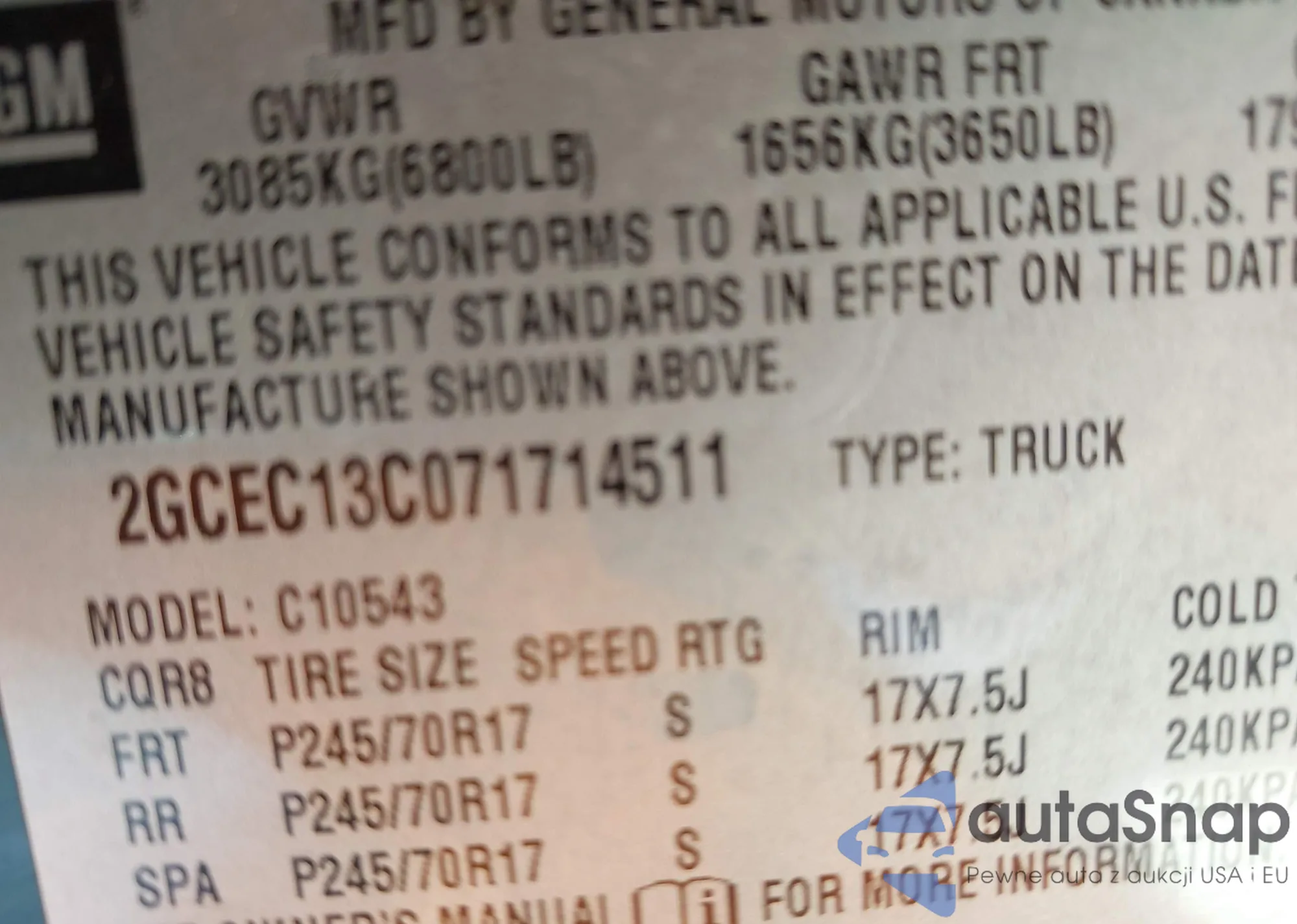 LOT: 43501272 VIN: 2GCEC13C071714511