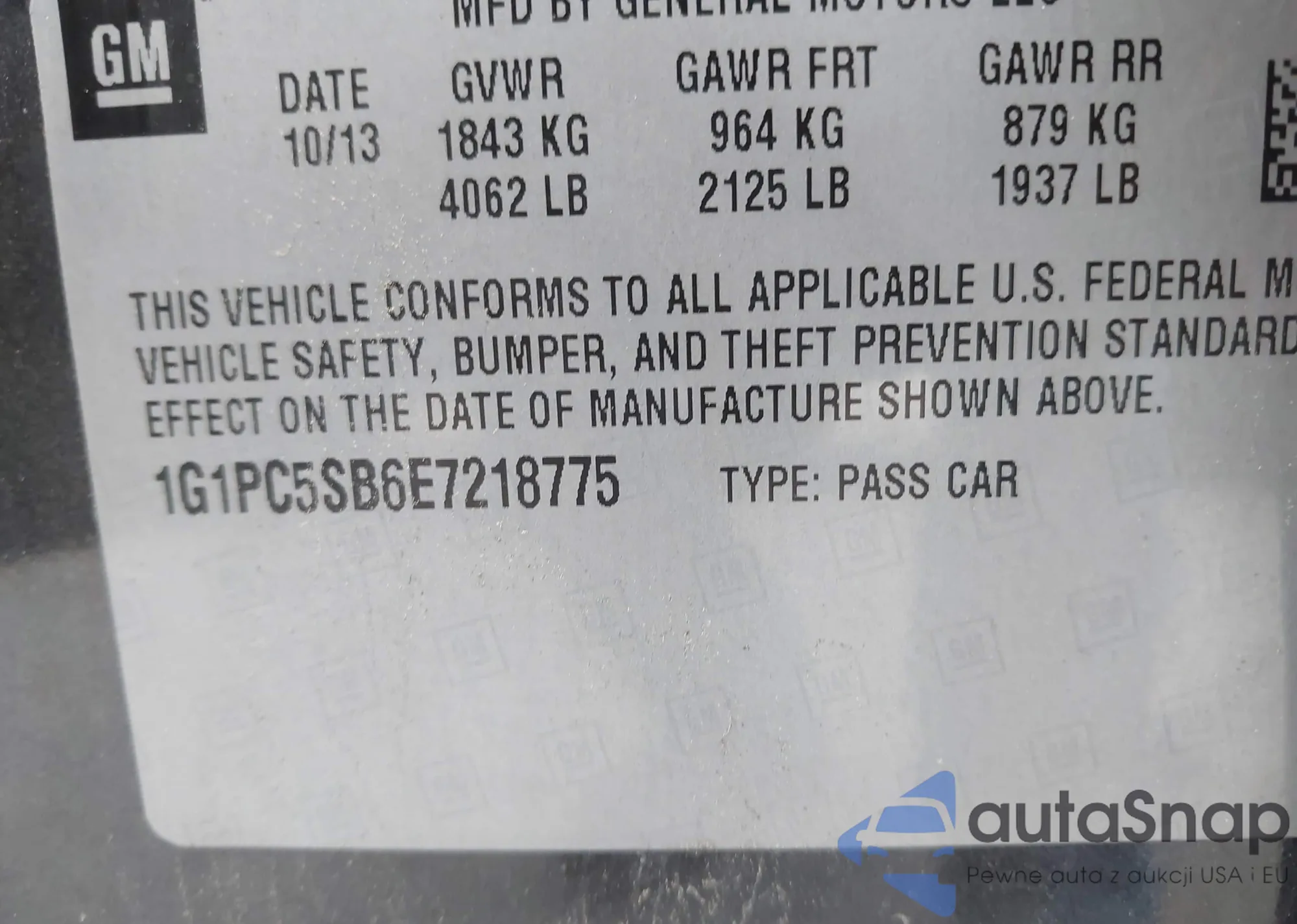 LOT: 43617246 VIN: 1G1PC5SB6E7218775