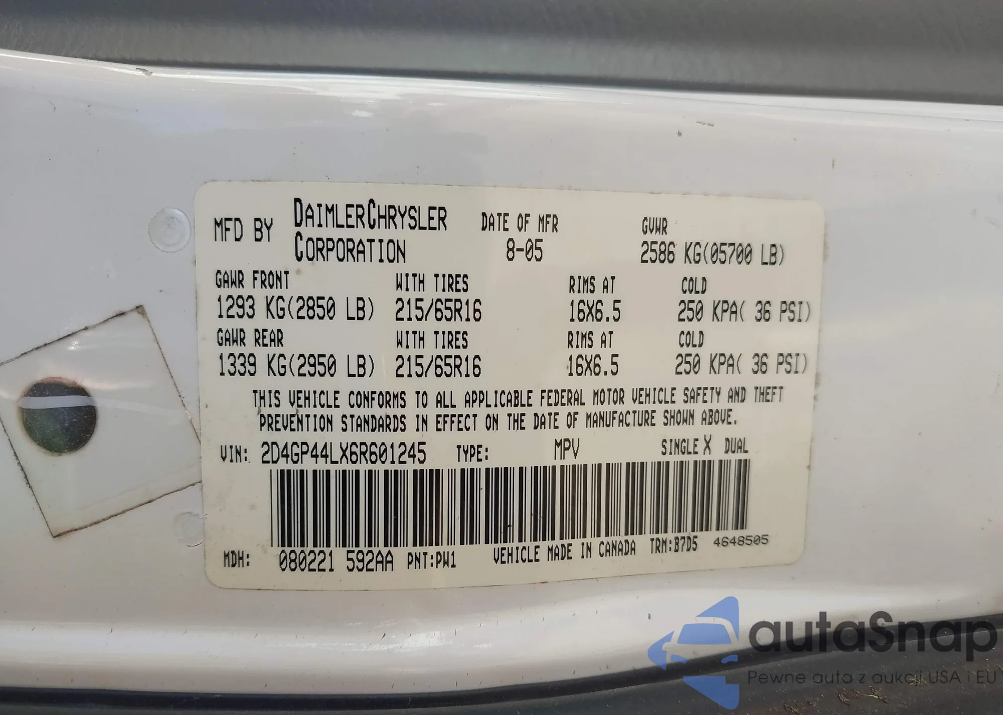 • VIN 2D4GP44LX6R601245