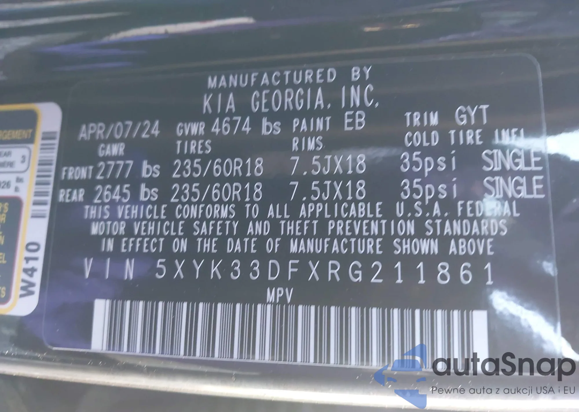 • VIN 5J8YD8H87RL000901