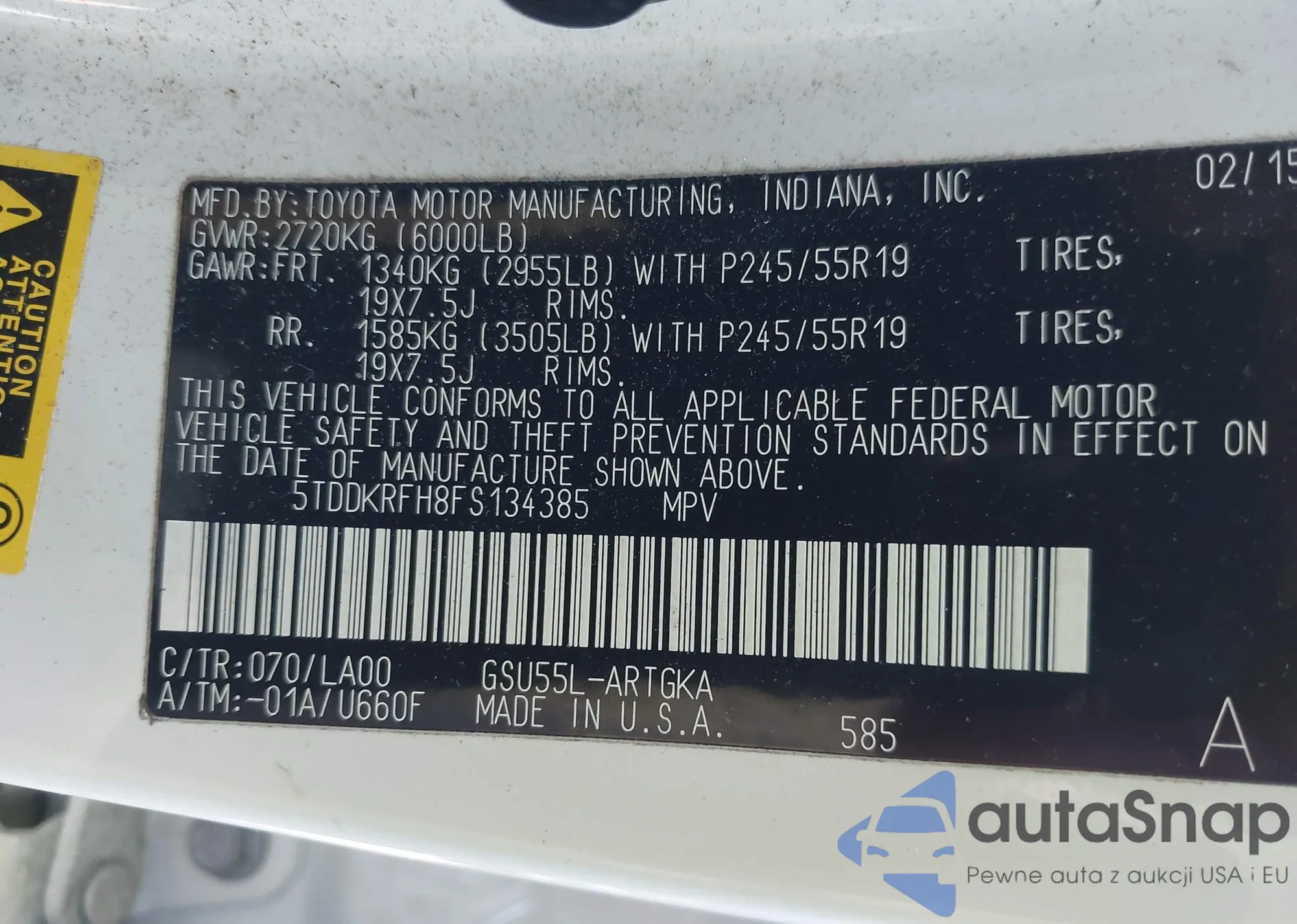 LOT: 43480558 VIN: 5TDDKRFH8FS134385