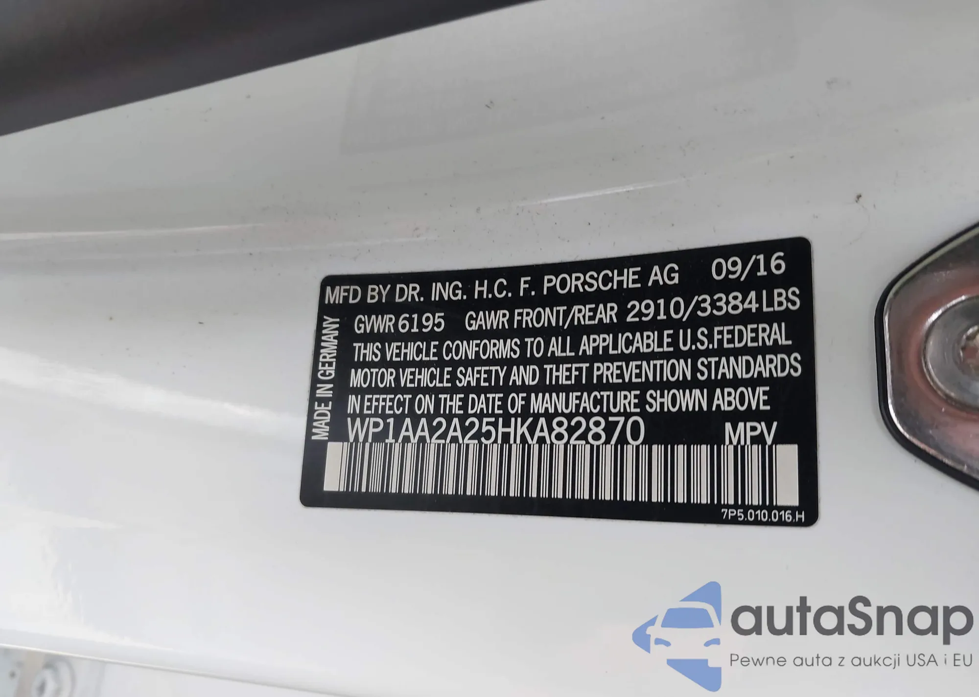 LOT: 43494586 VIN: WP1AA2A25HKA82870