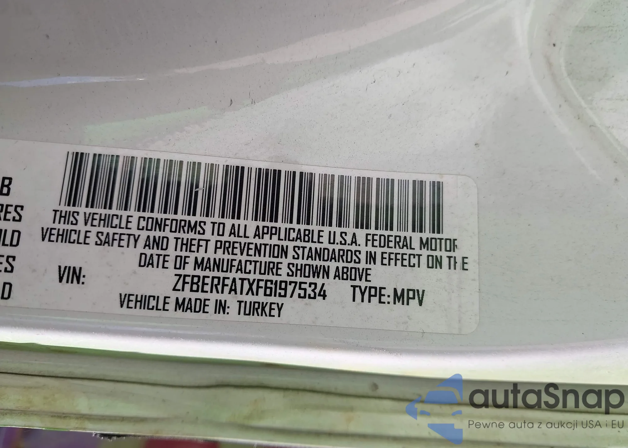 LOT: 43049695 VIN: ZFBERFATXF6197534