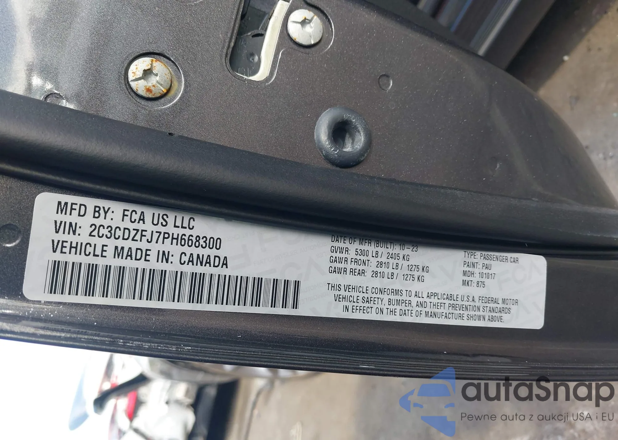 • VIN 2C3CDZFJ7PH668300