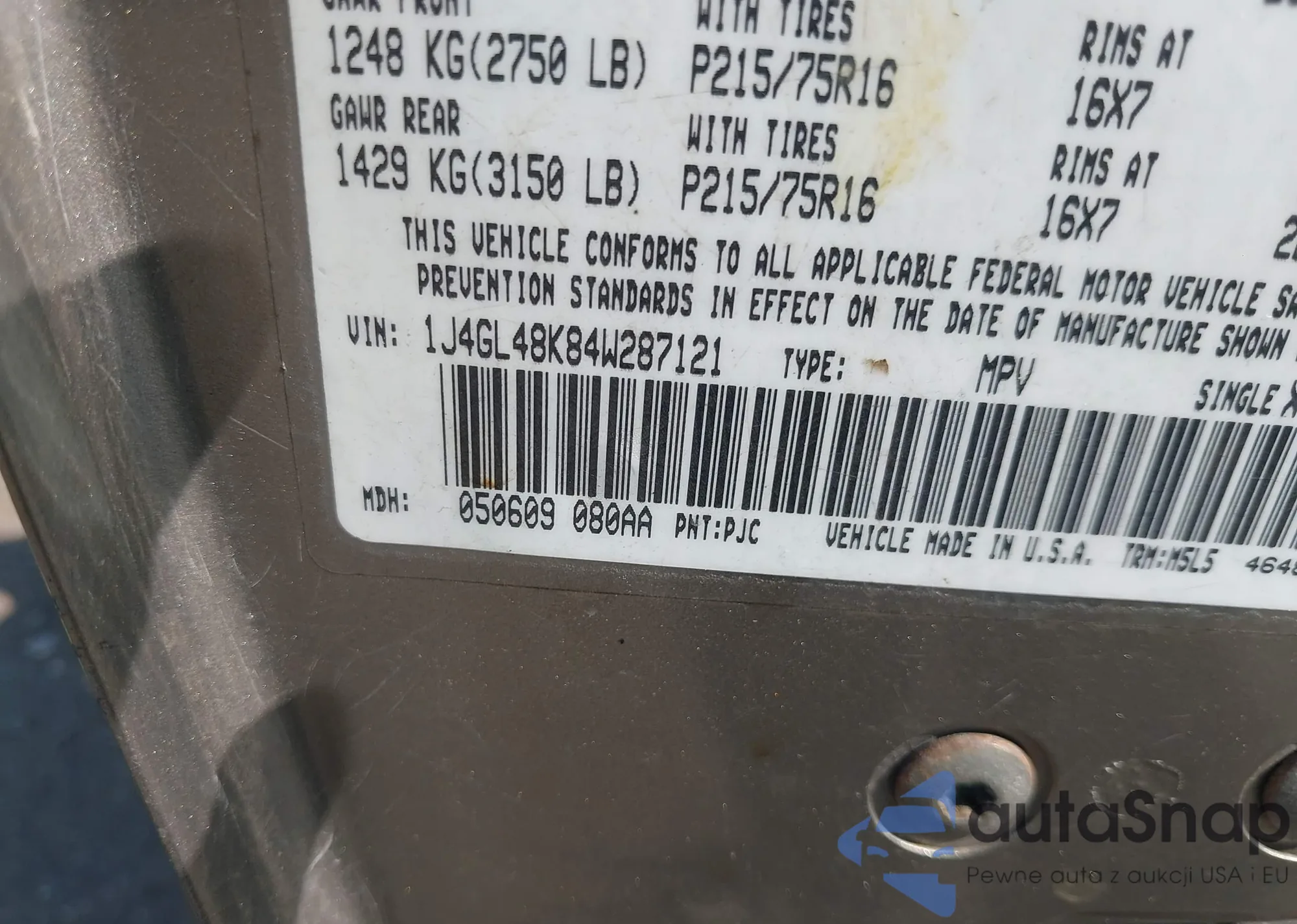 LOT: 43243990 VIN: 1C4RJXP66RW230059