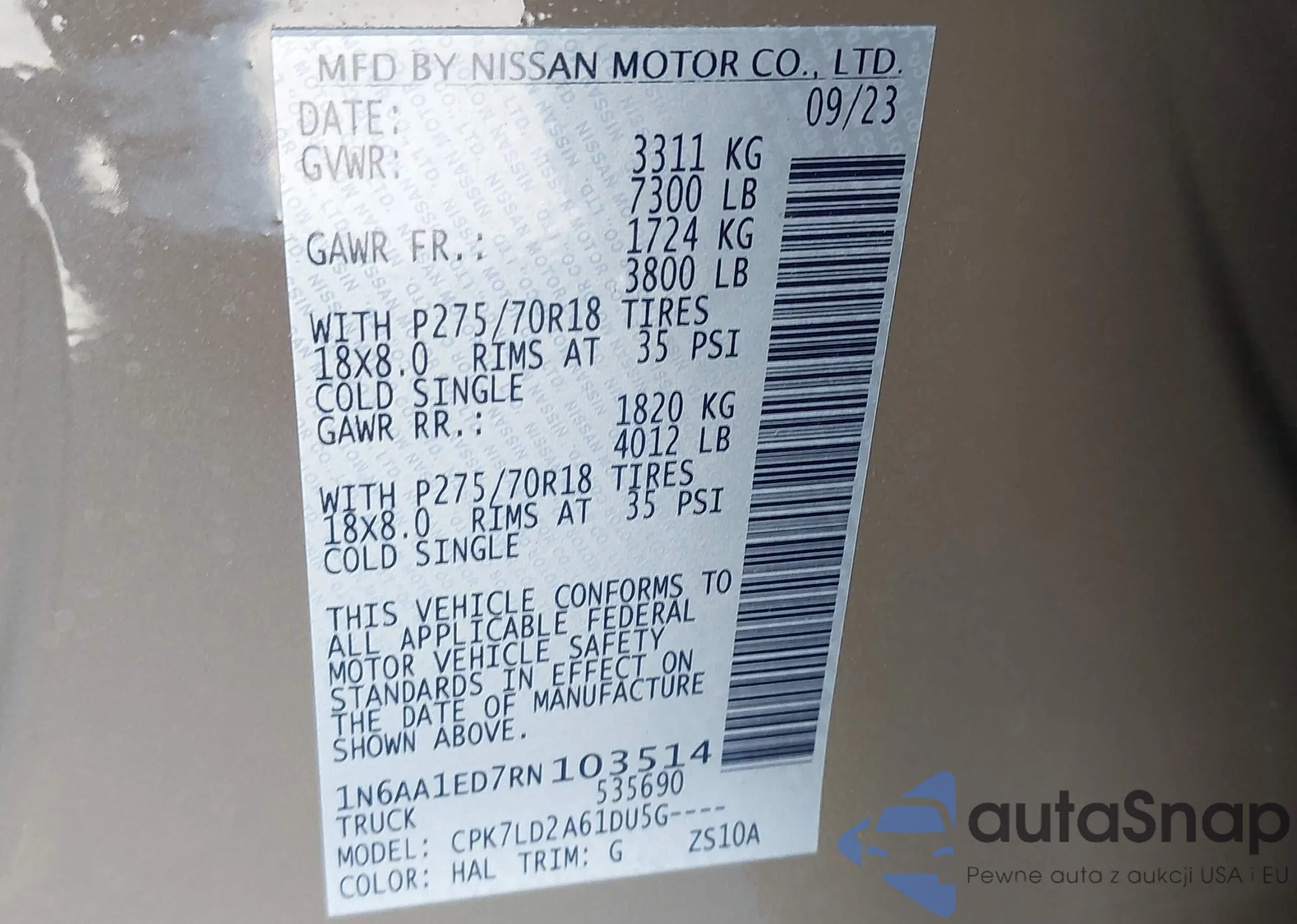 • VIN 1N6AA1ED7RN103514
