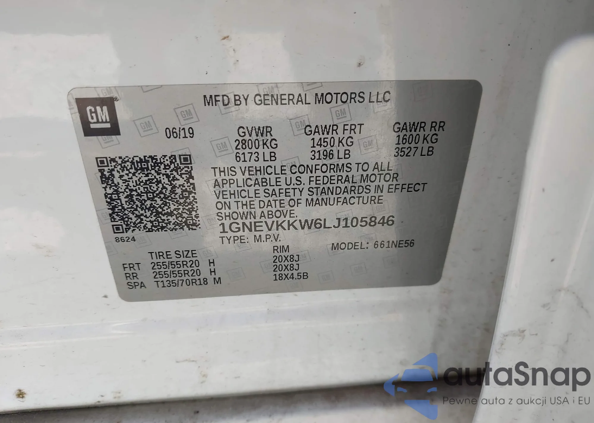 LOT: 43315481 VIN: 1GNEVKKW6LJ105846
