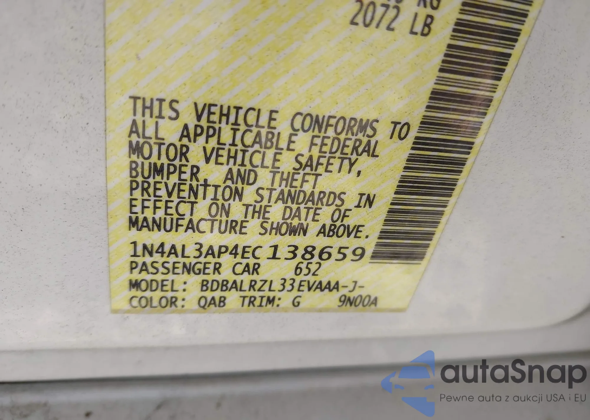 LOT: 43536275 VIN: 1N4AL3AP4EC138659