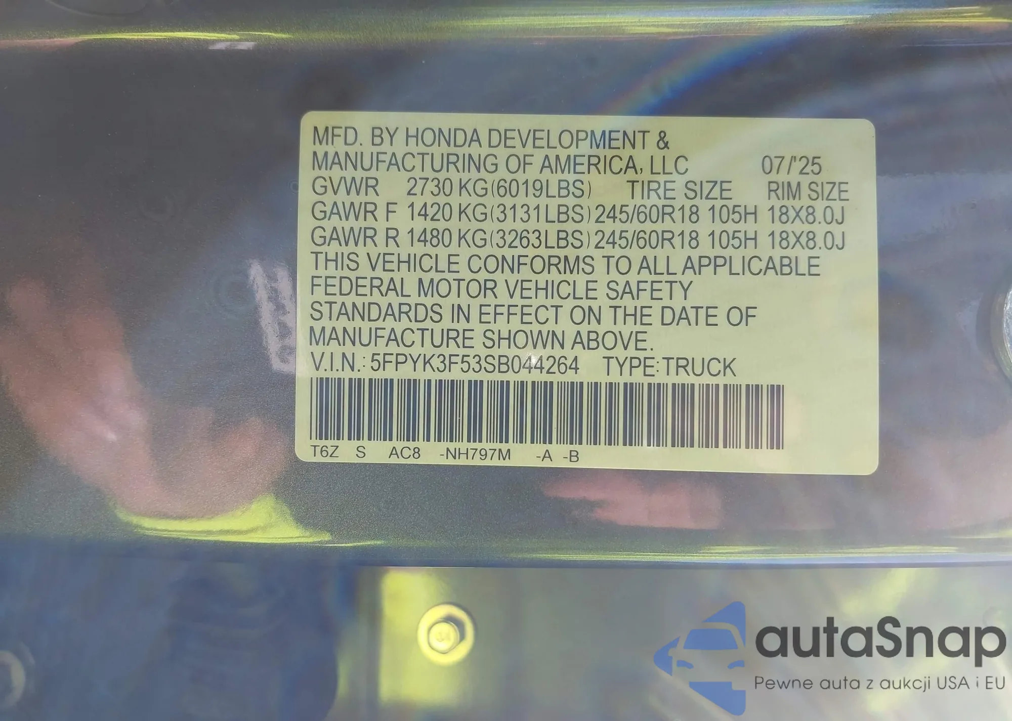 • VIN 5FPYK3F53SB044264