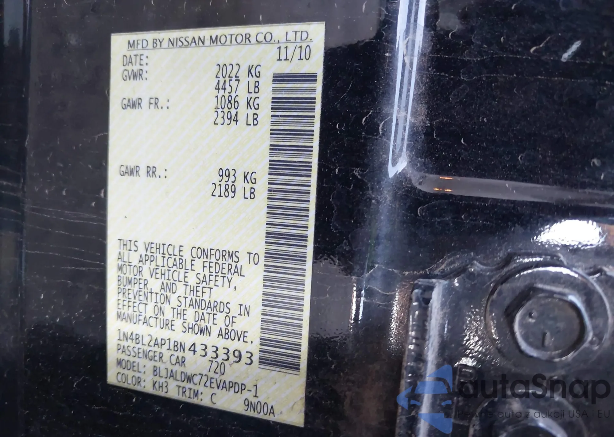 LOT: 43408660 VIN: 1N4BL2AP1BN433393
