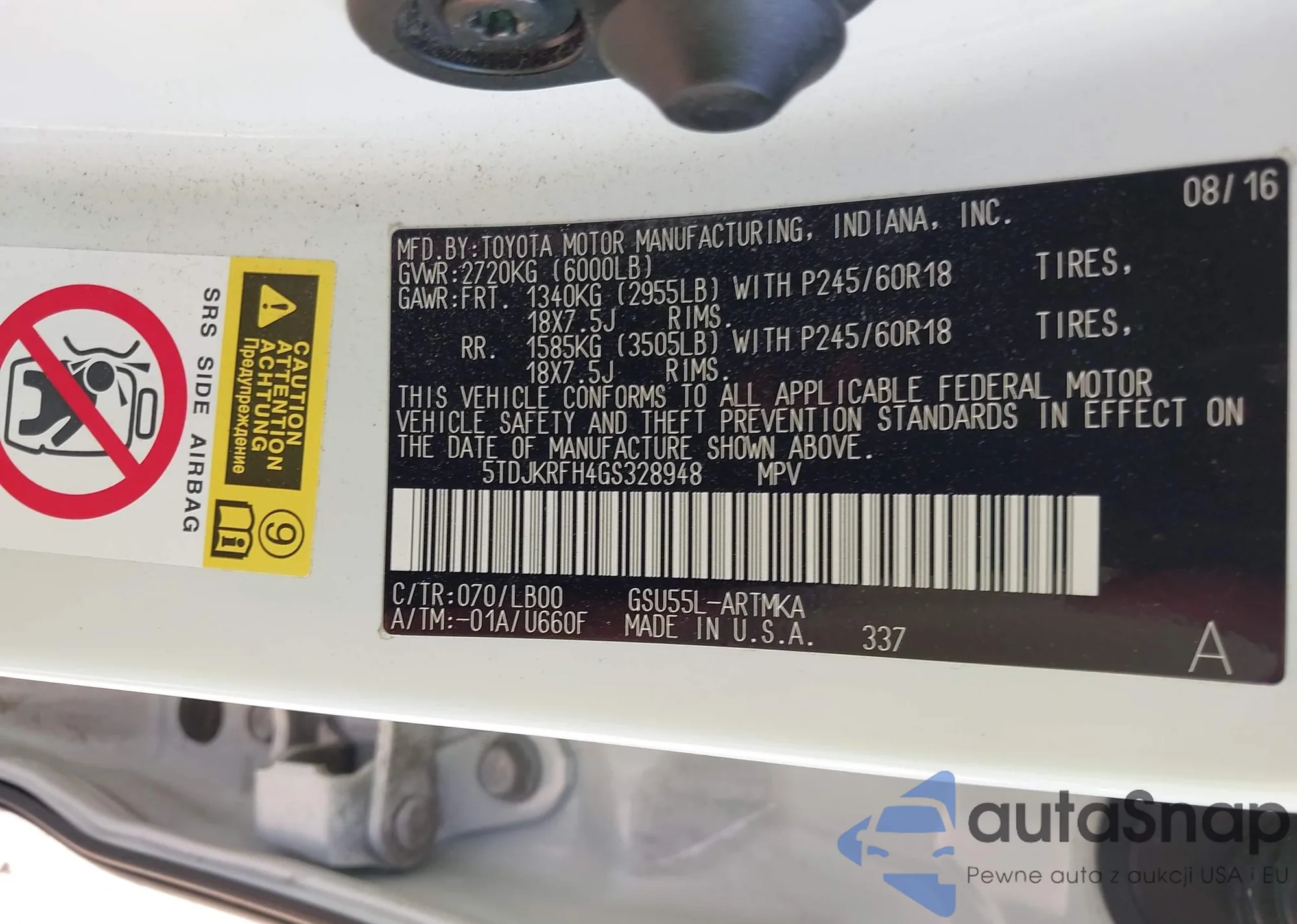 • VIN 5TDJKRFH4GS328948