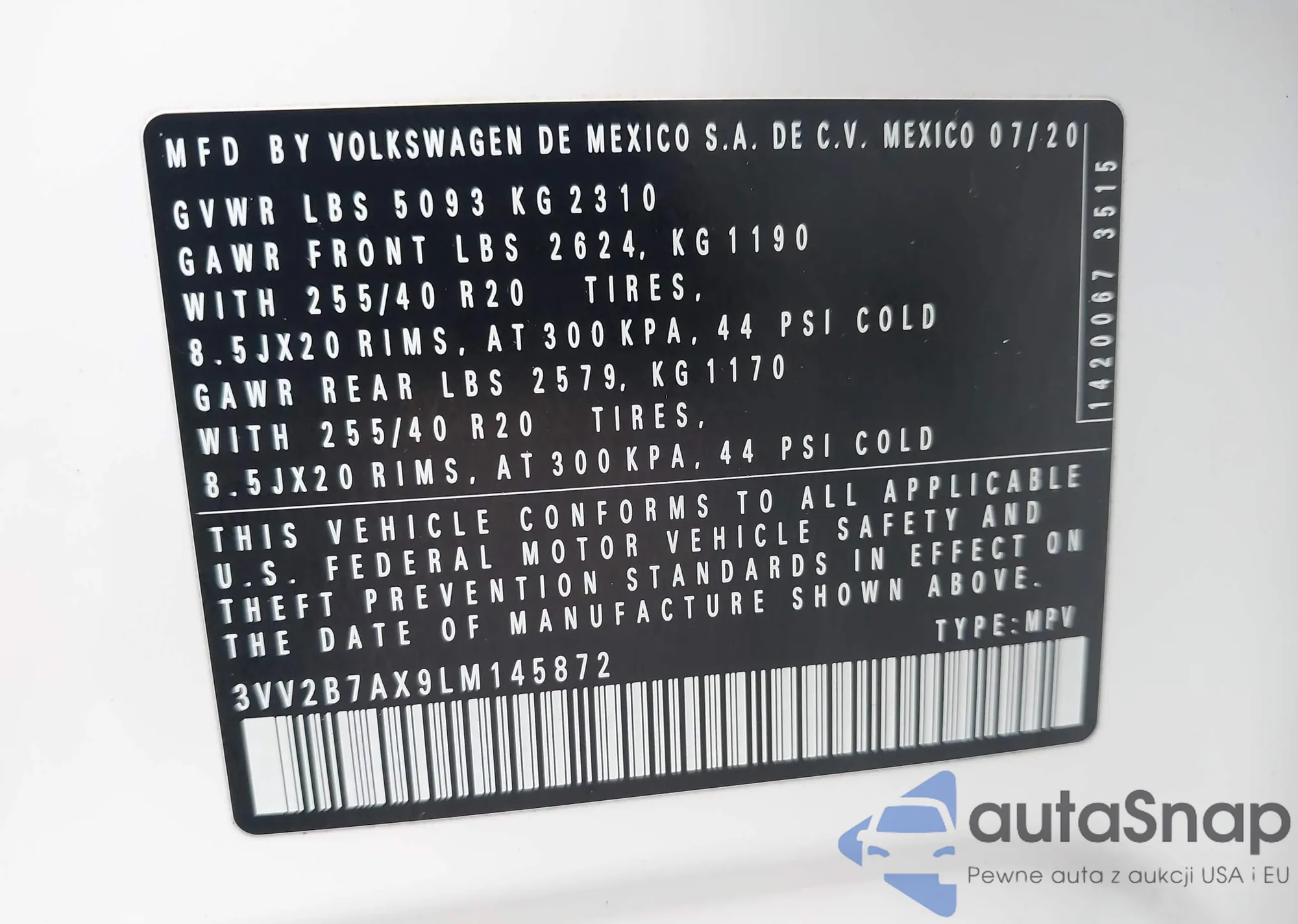 • VIN 3VV2B7AX9LM145872