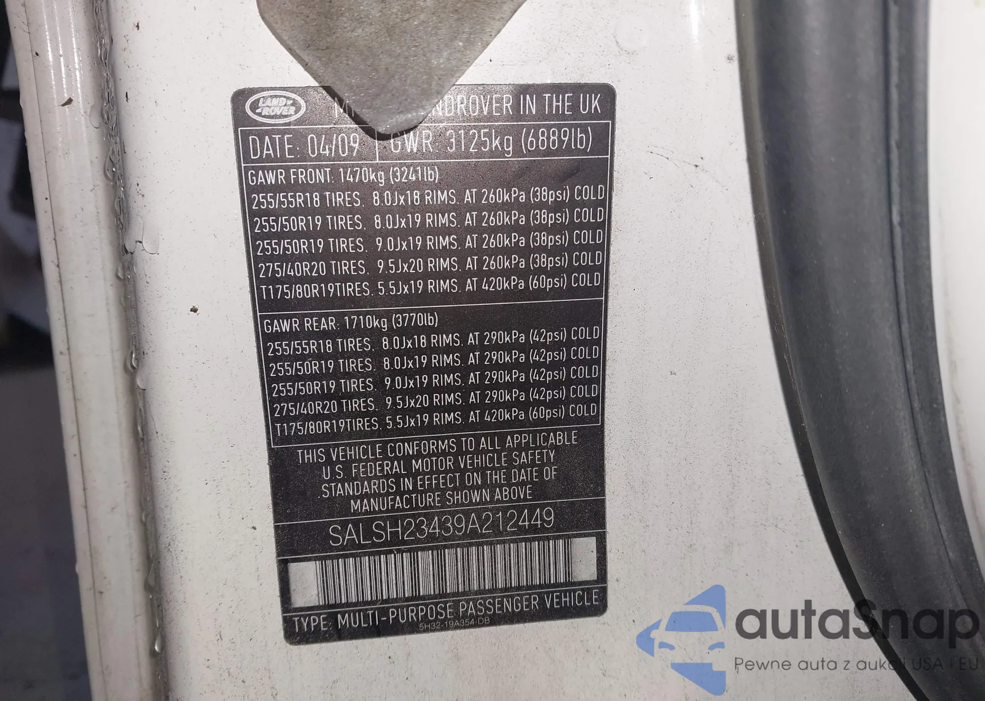 LOT: 43563958 VIN: SALSH23439A212449