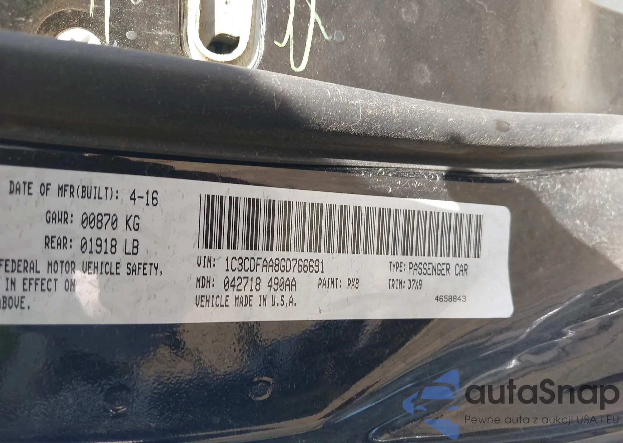 • VIN 1C3CDFAA8GD766691