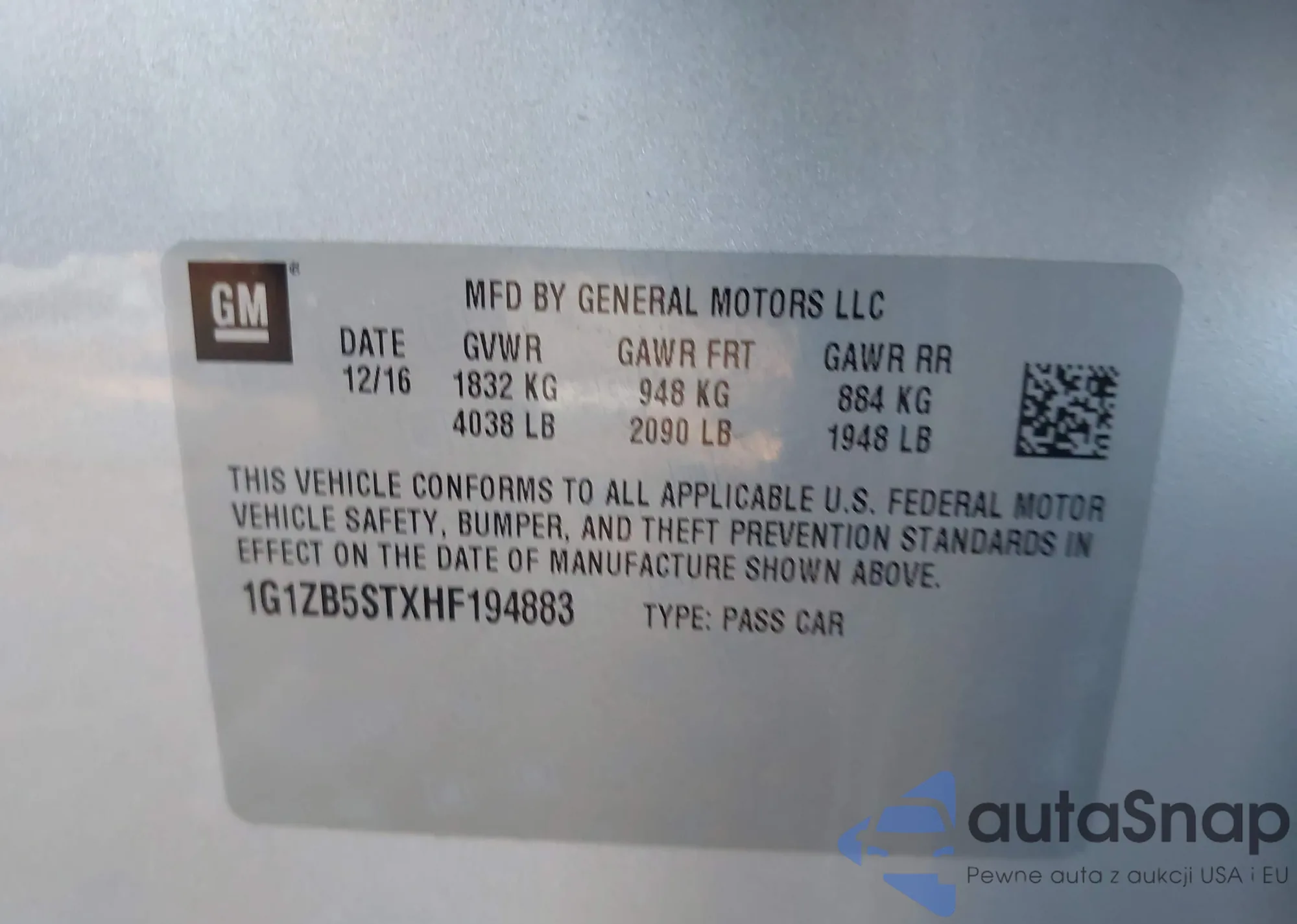 • VIN 1G1FY6S00P4120704