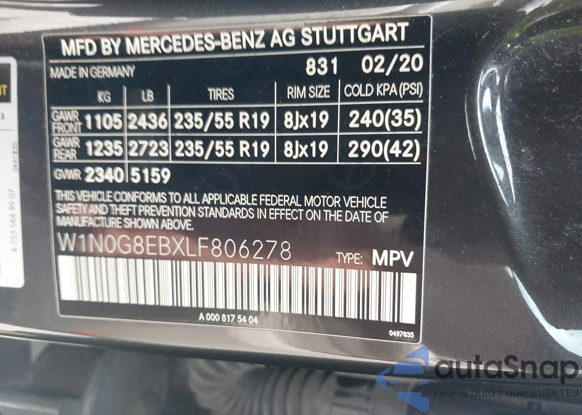 • VIN W1N0G8EBXLF806278