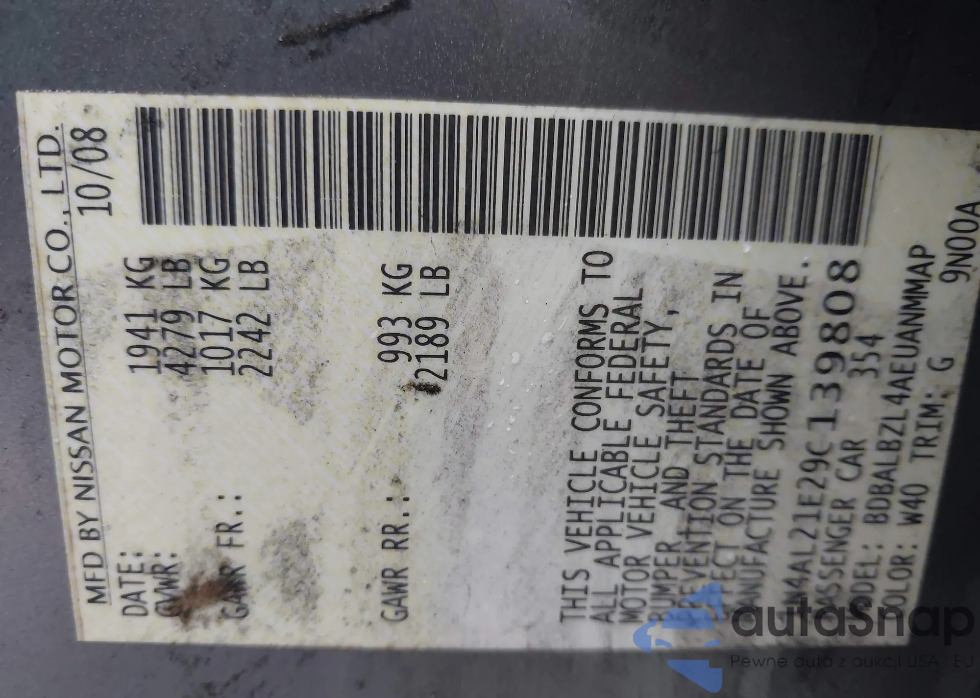LOT: 43415385 VIN: 1N4AL21E29C139808