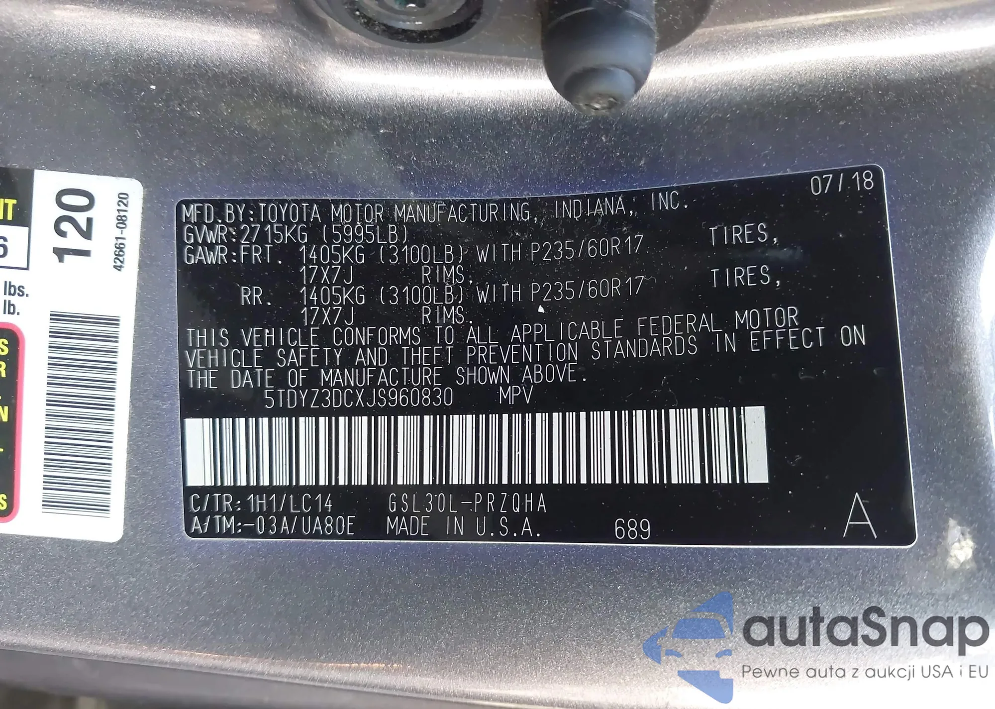 • VIN 5TDYZ3DCXJS960830