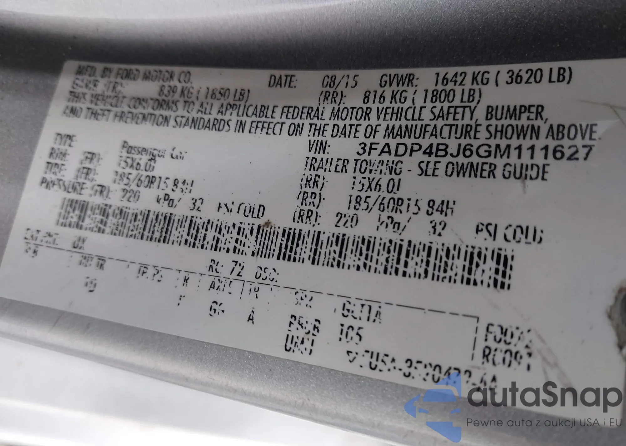 LOT: 43560058 VIN: 3FADP4BJ6GM111627