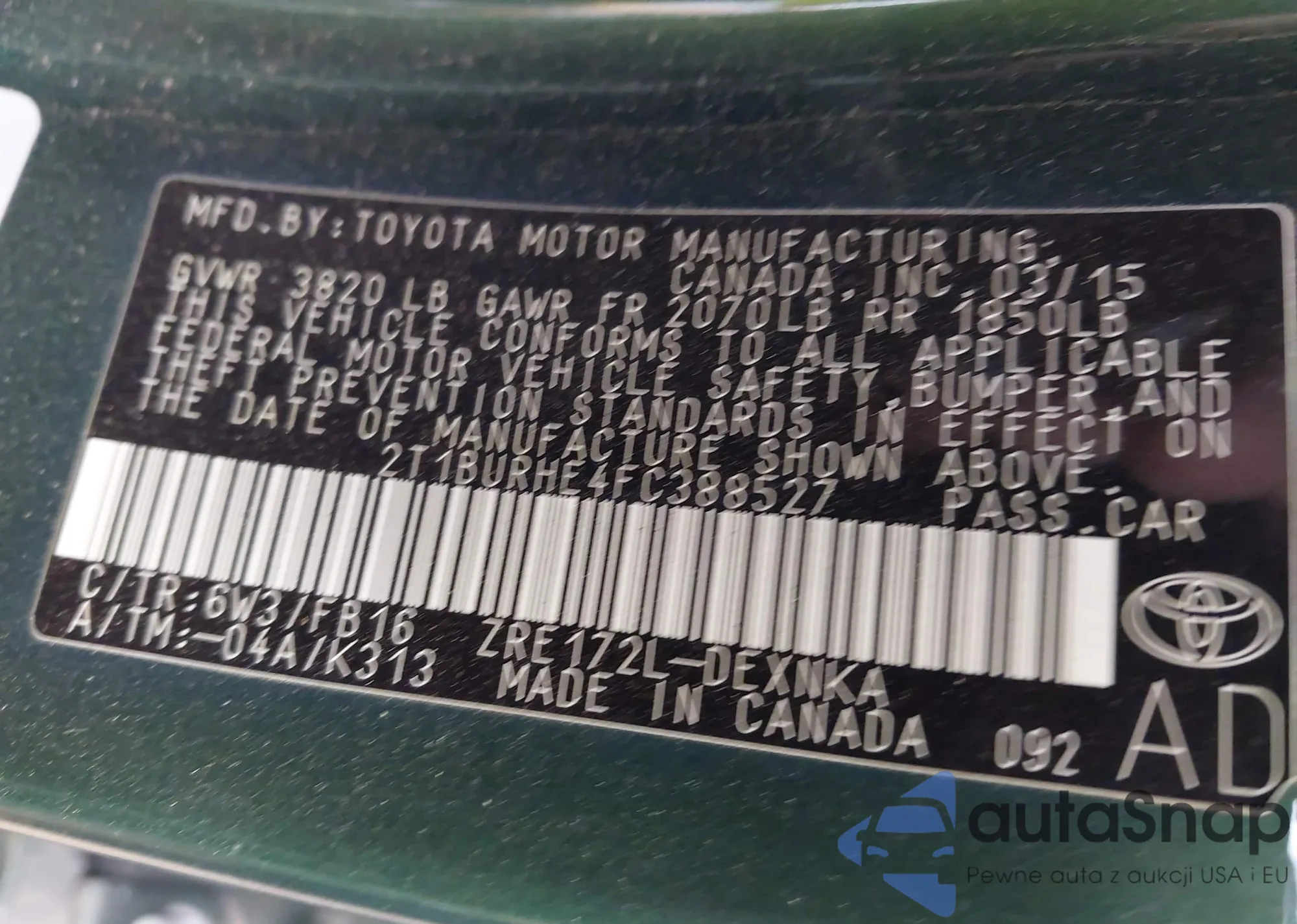 • VIN 2T1BURHE4FC388527