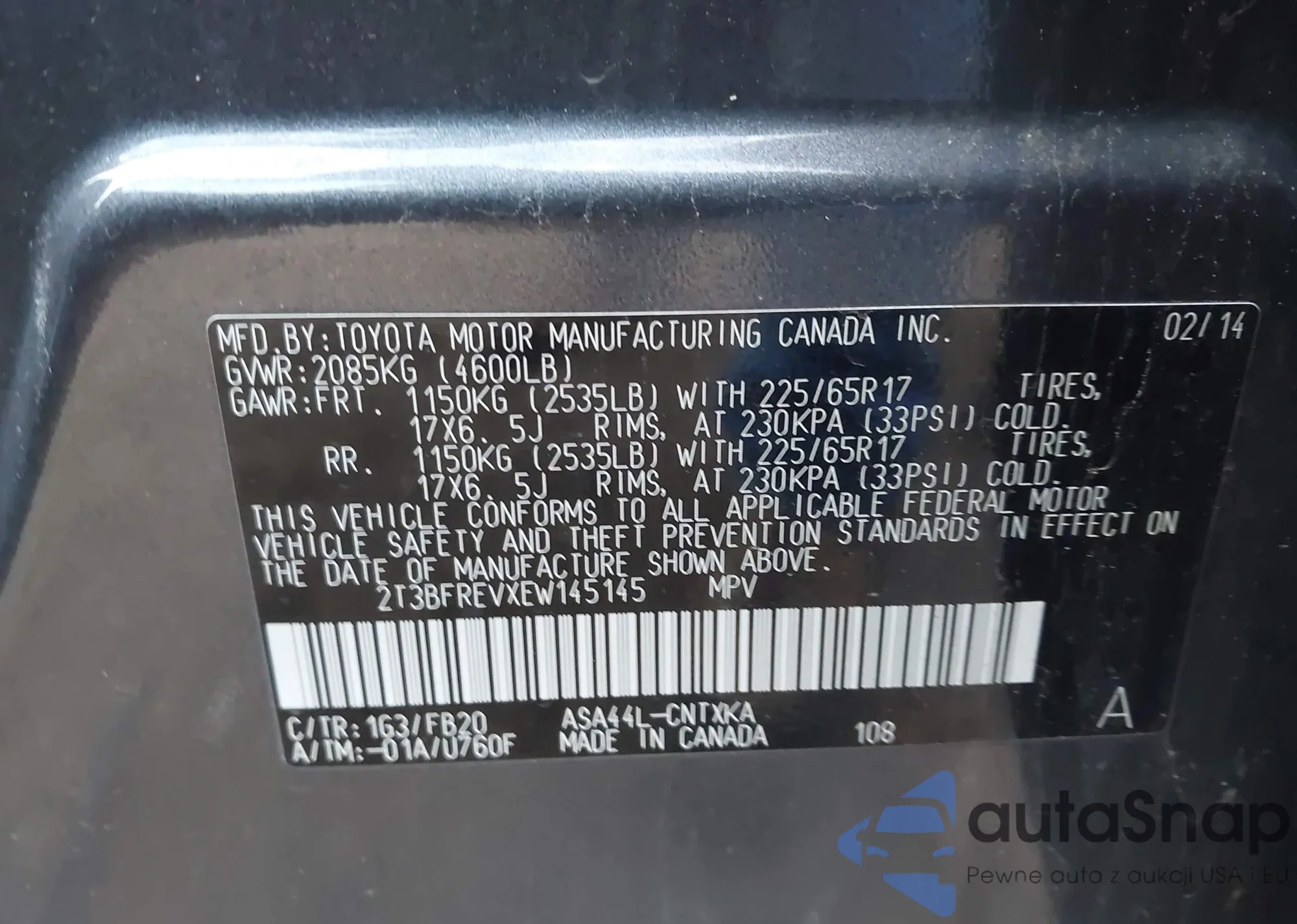 LOT: 43591145 VIN: JTDKTUD38ED574681