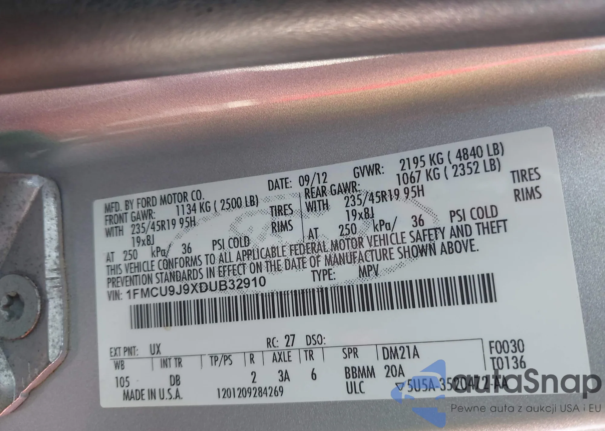 LOT: 43105495 VIN: 1FMCU9J9XDUB32910