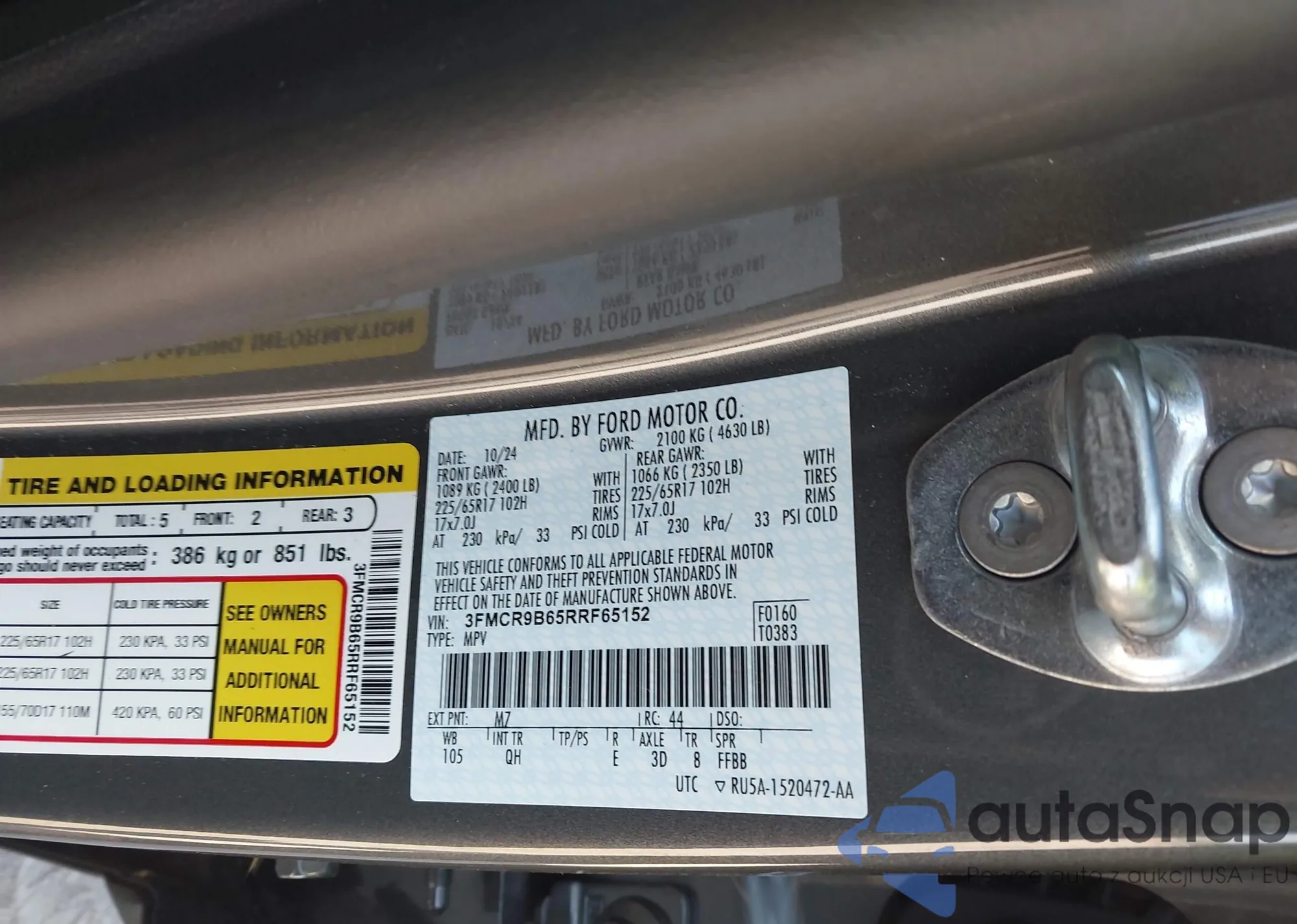 LOT: 43118104 VIN: 3FMCR9B65RRF65152