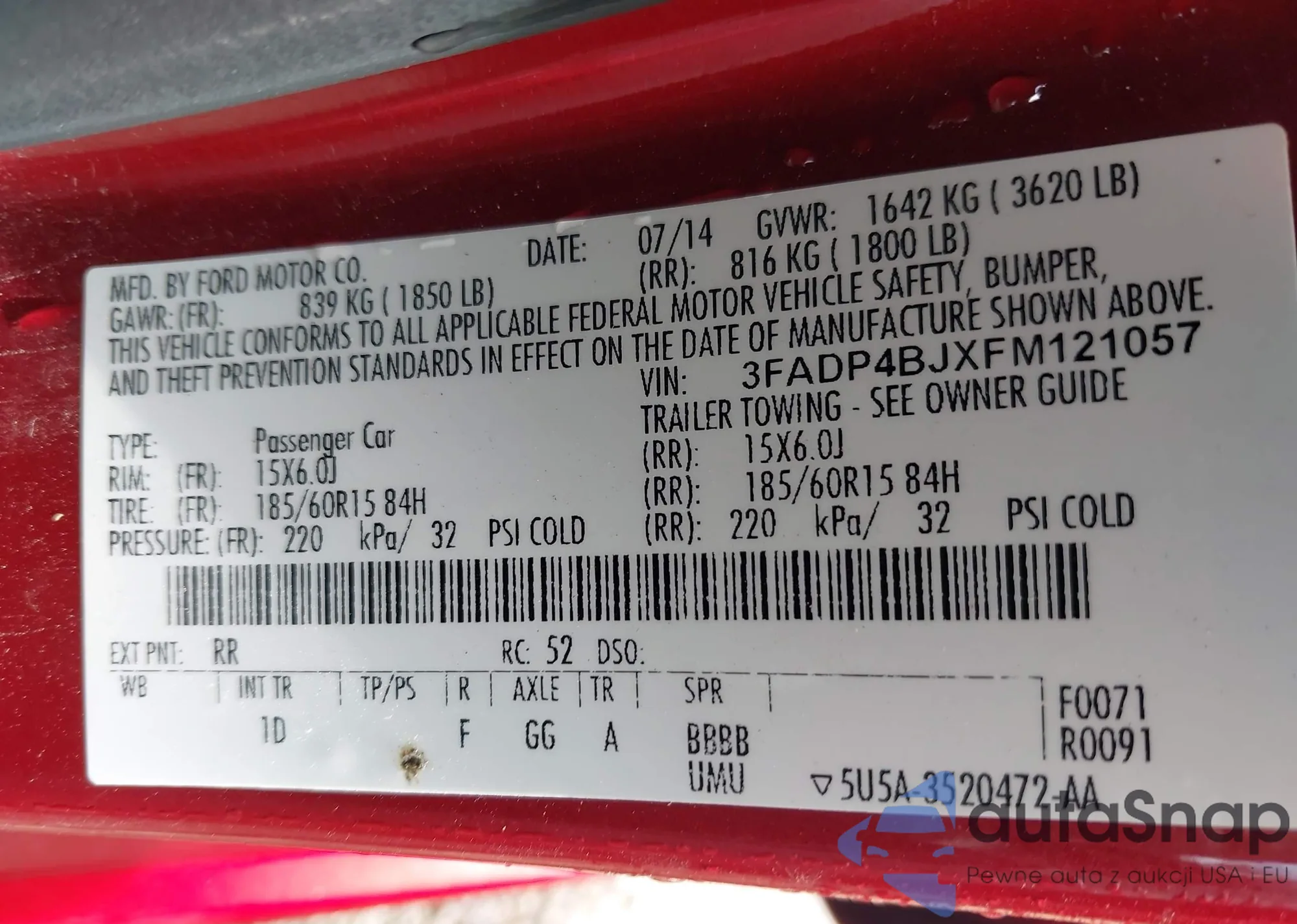 LOT: 43167899 VIN: 3FADP4BJXFM121057