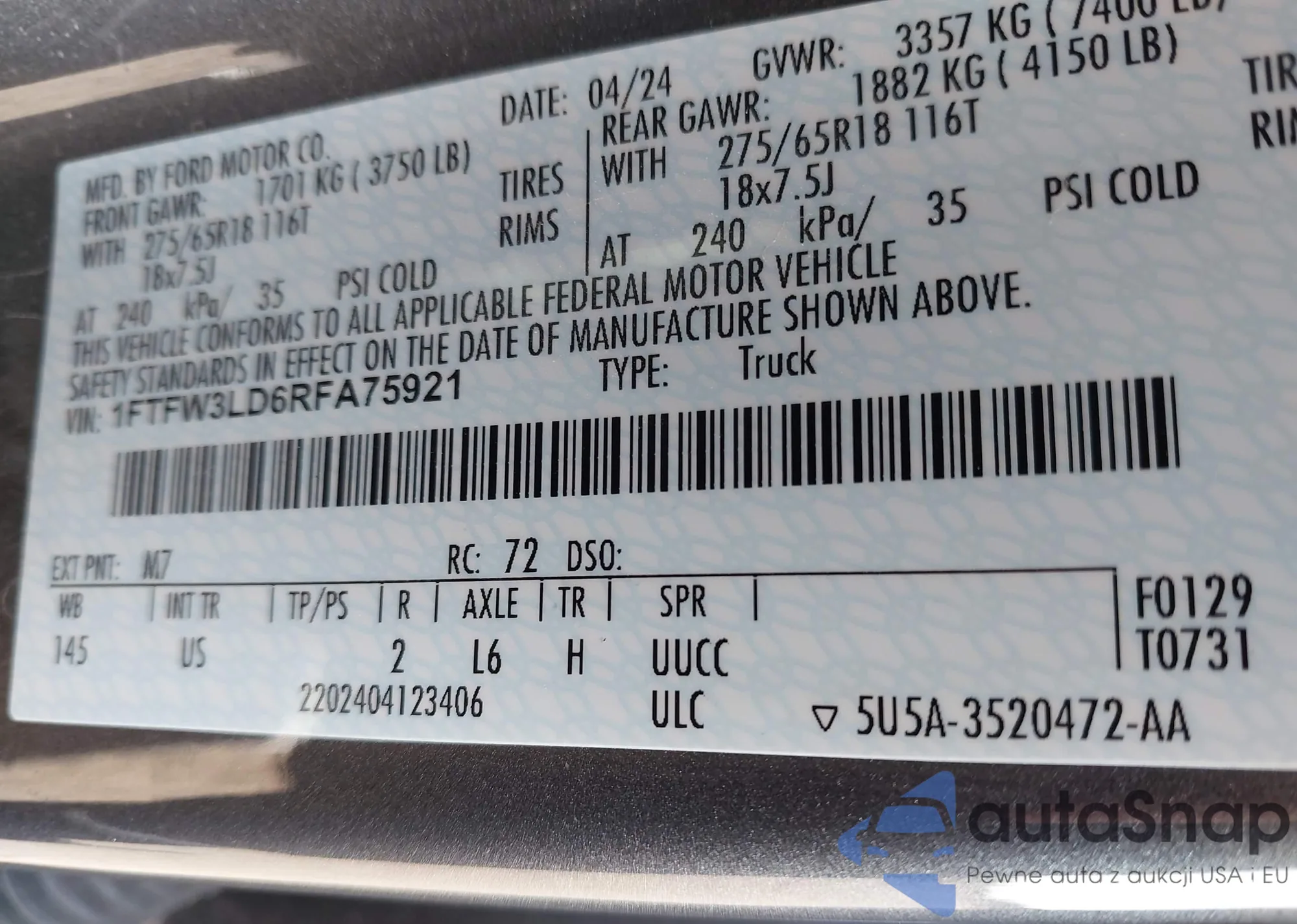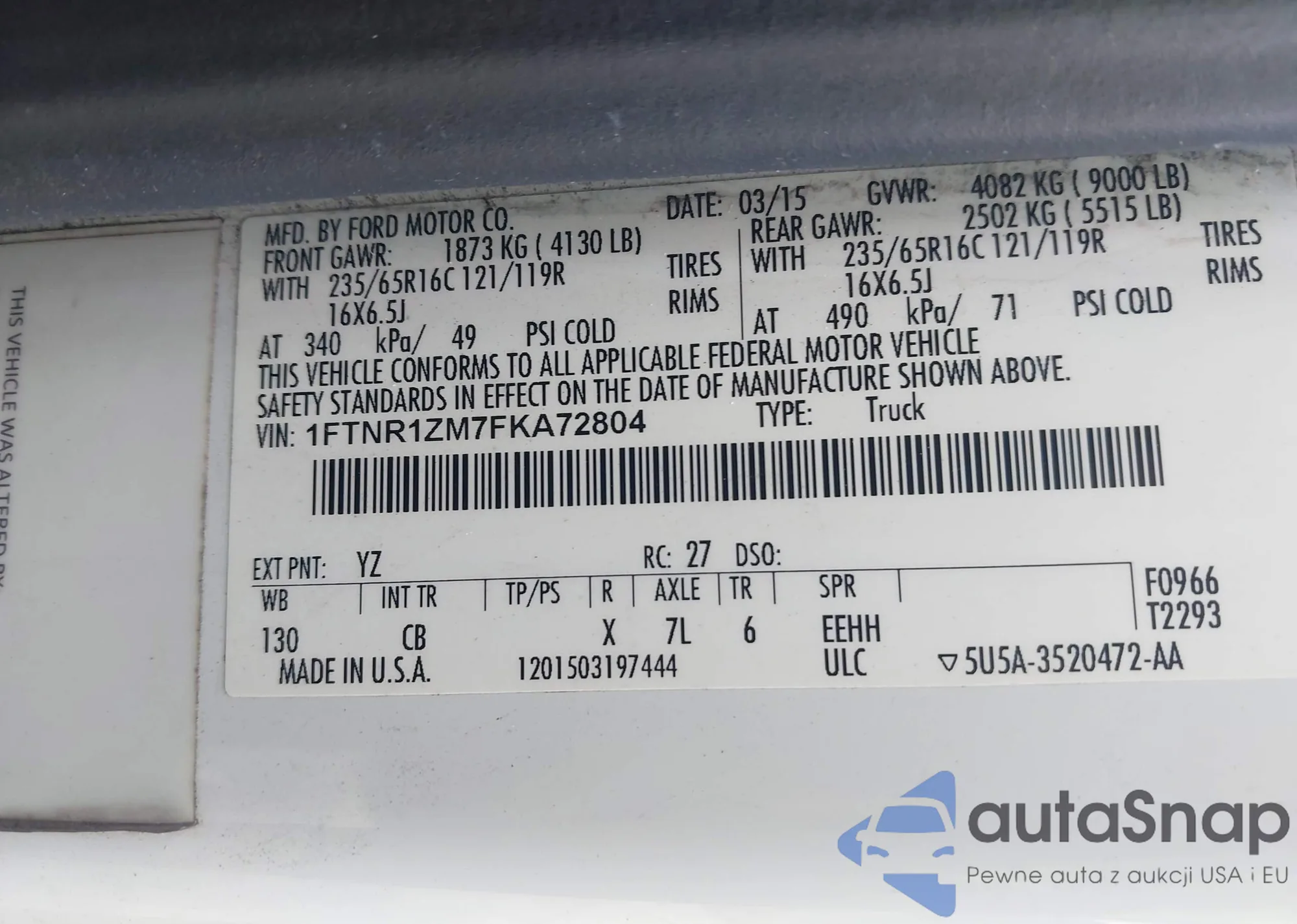 • VIN 1FTNR1ZM7FKA72804