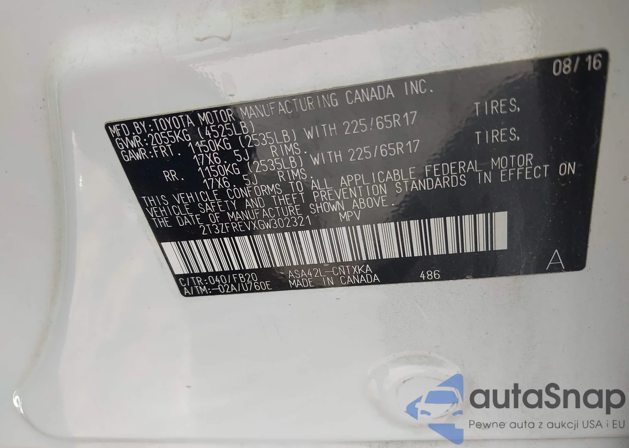 LOT: 43471353 VIN: 5TETX22N16Z227770