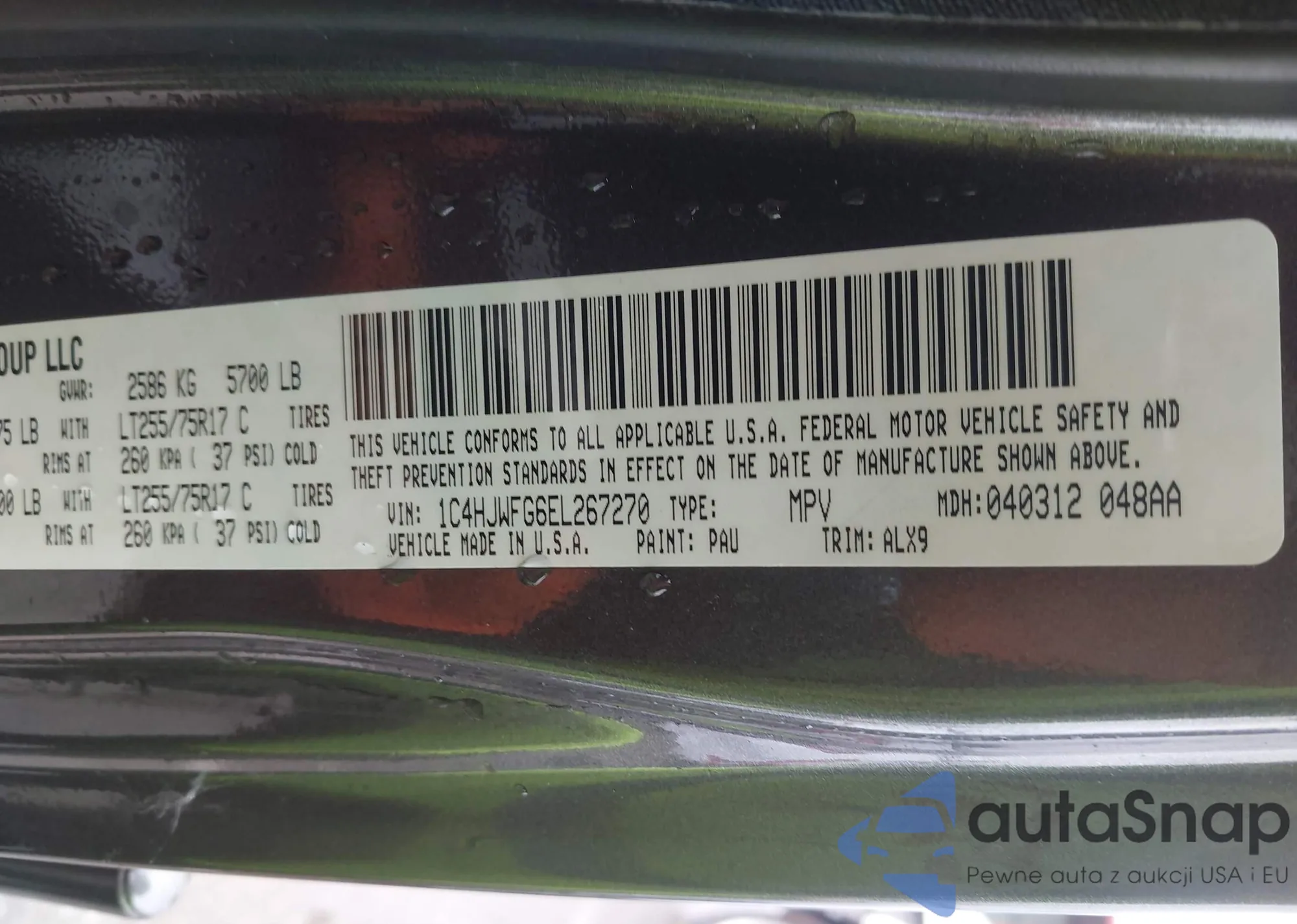 • VIN 1C4HJWFG6EL267270