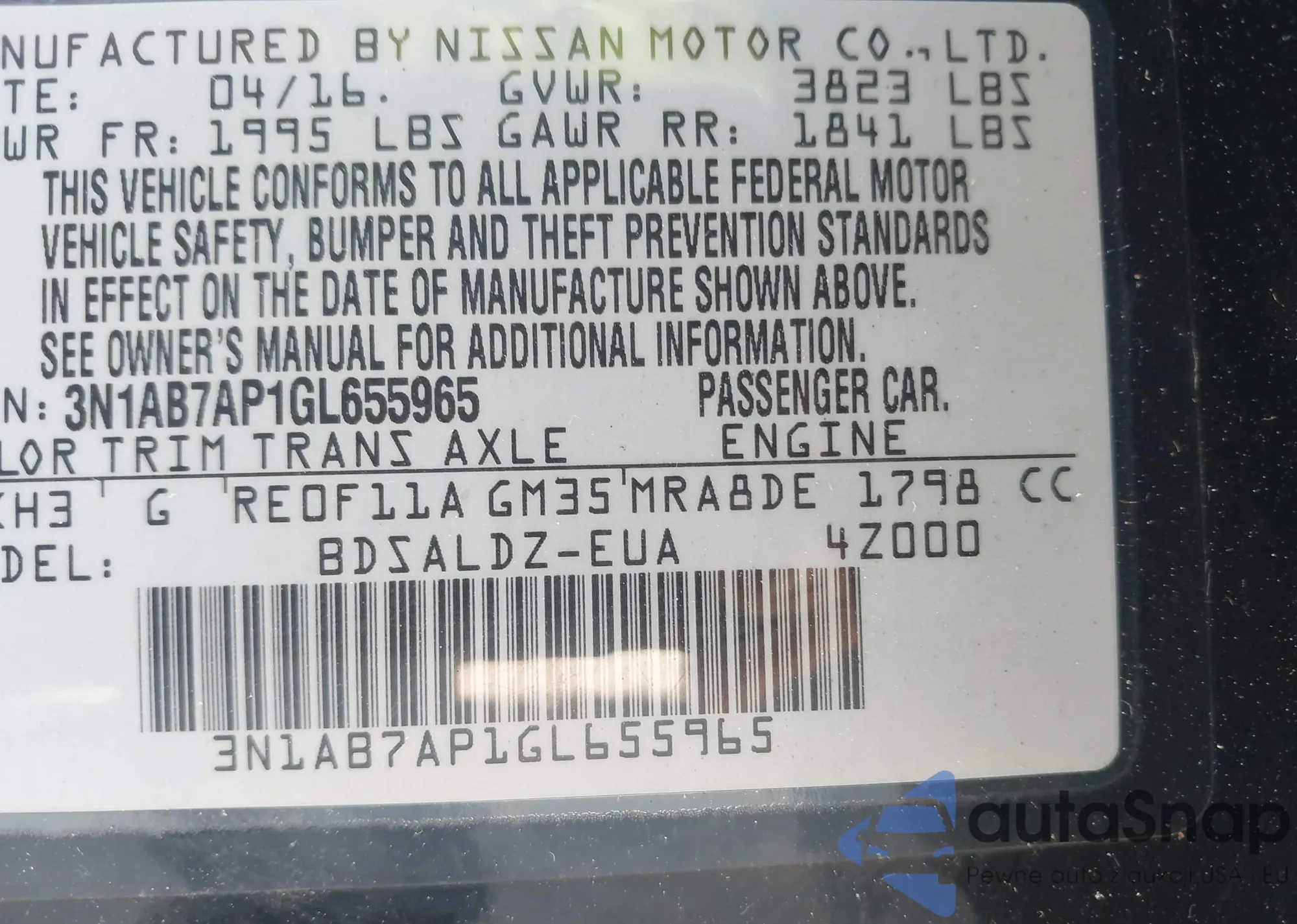 LOT: 42511504 VIN: 1N4BA41E47C821656