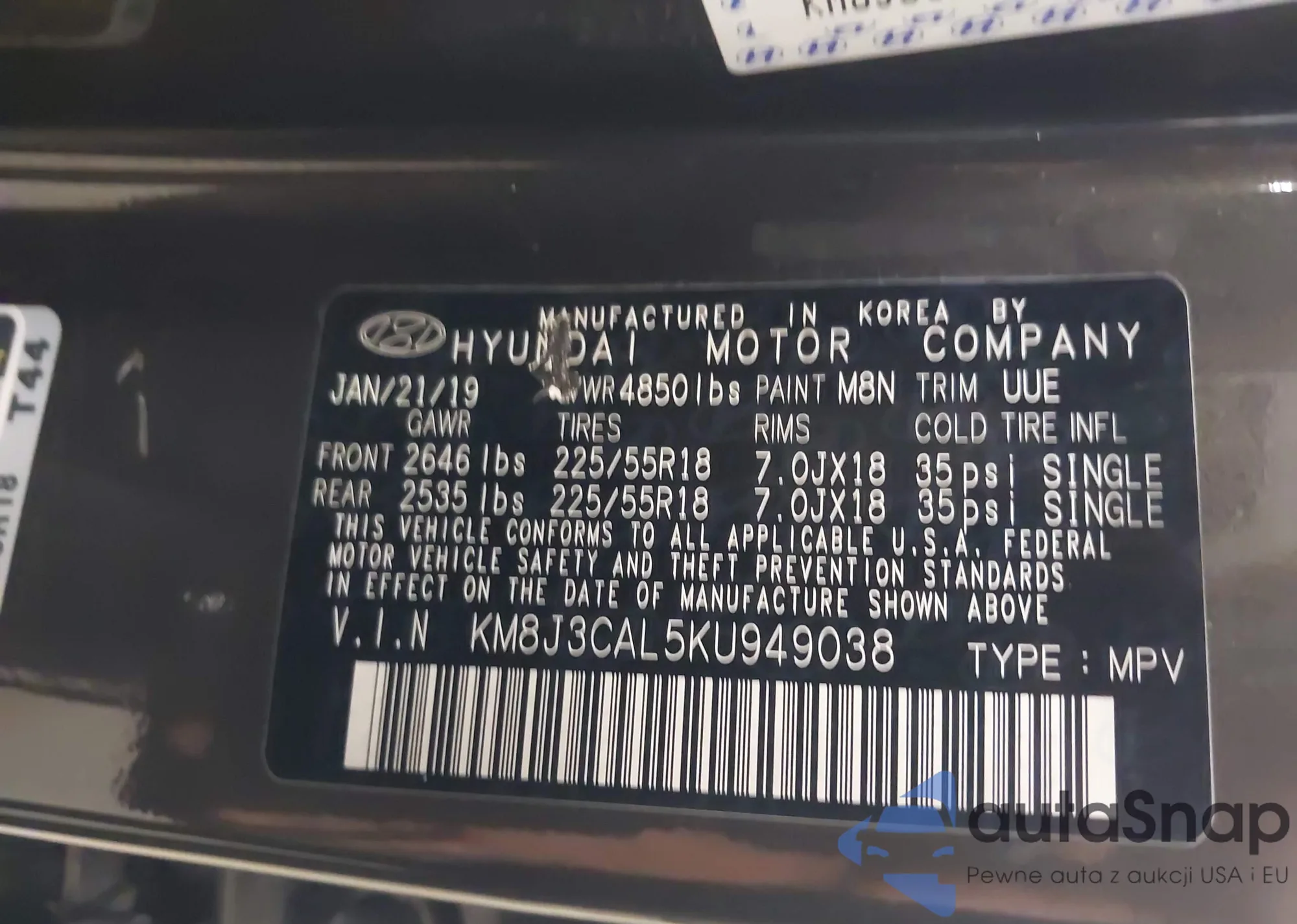 • VIN KM8J3CAL5KU949038
