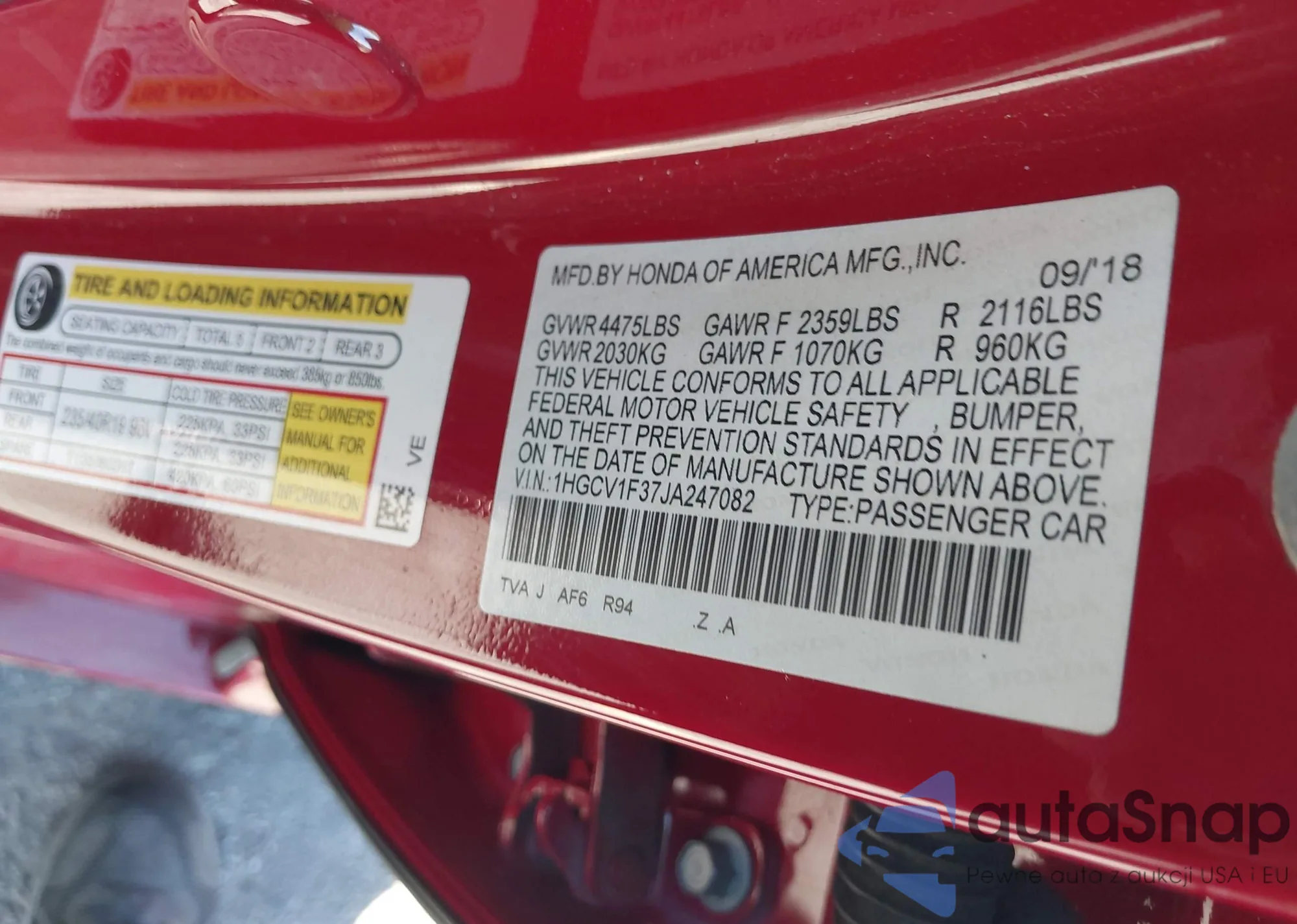 • VIN 5J8YD4H50KL020217