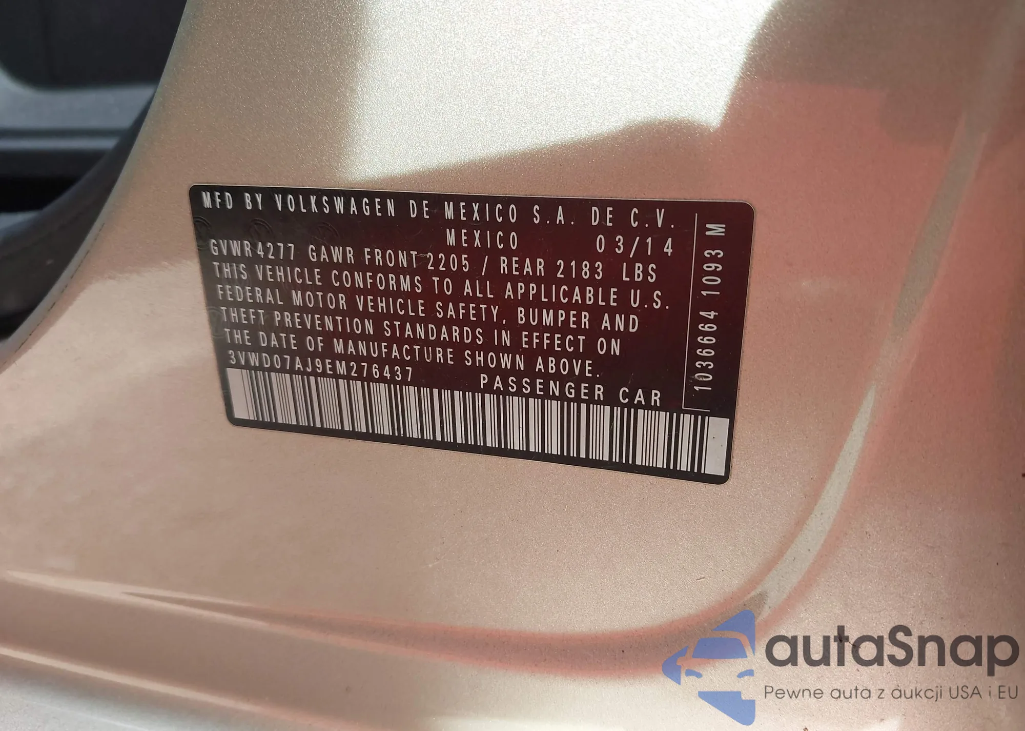 • VIN 3VWD07AJ9EM276437