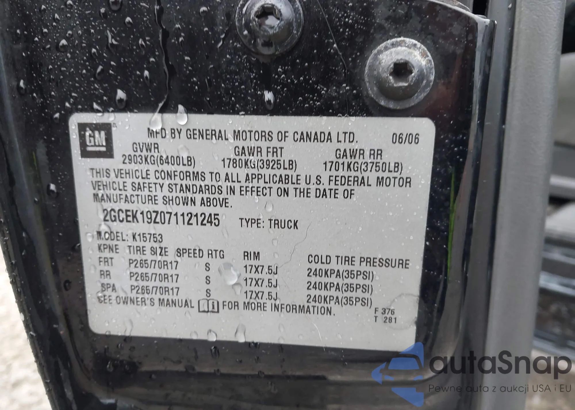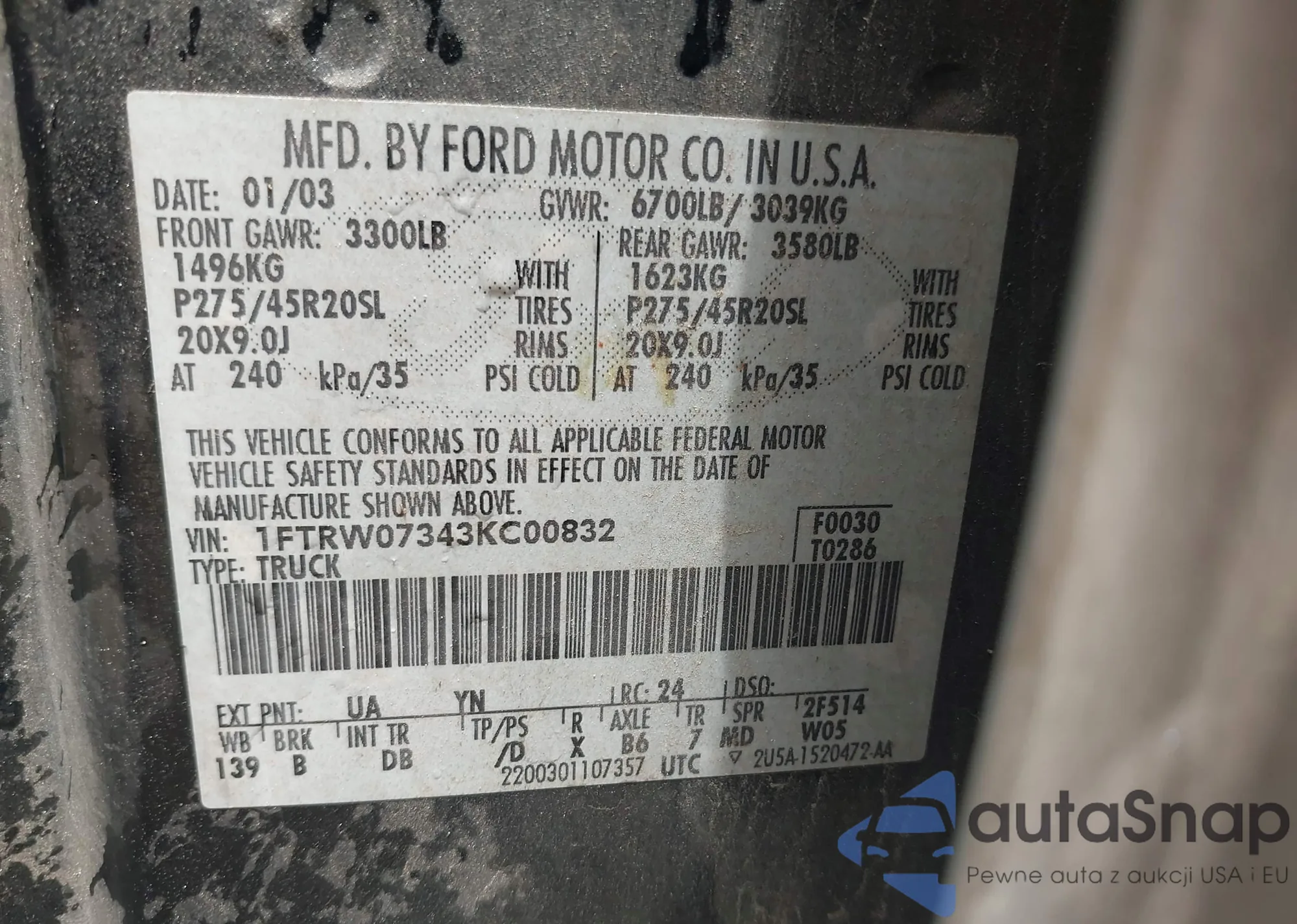 • VIN 4S3GTAC65K3715840