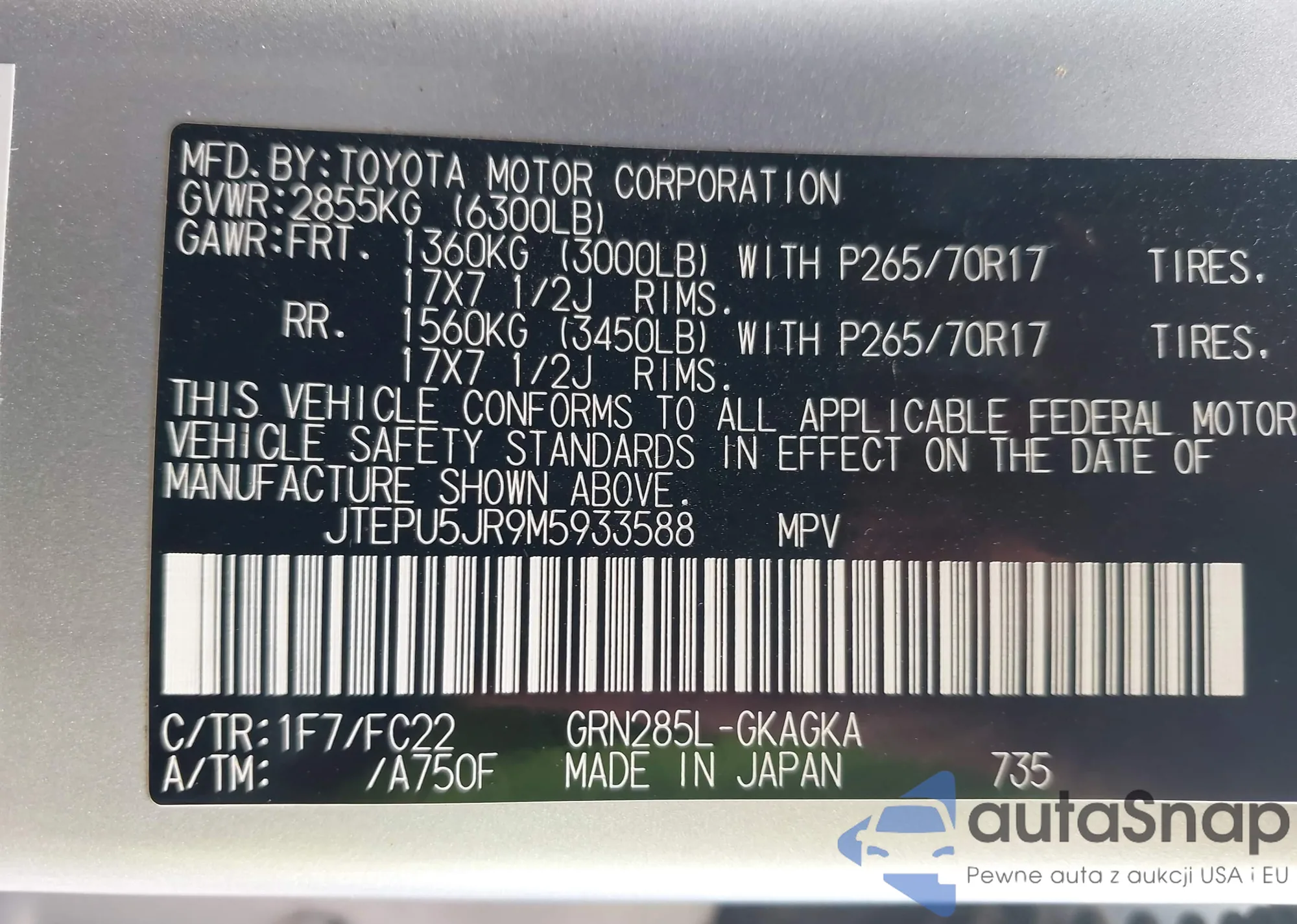 LOT: 43683991 VIN: JT8BF22G8V5003055