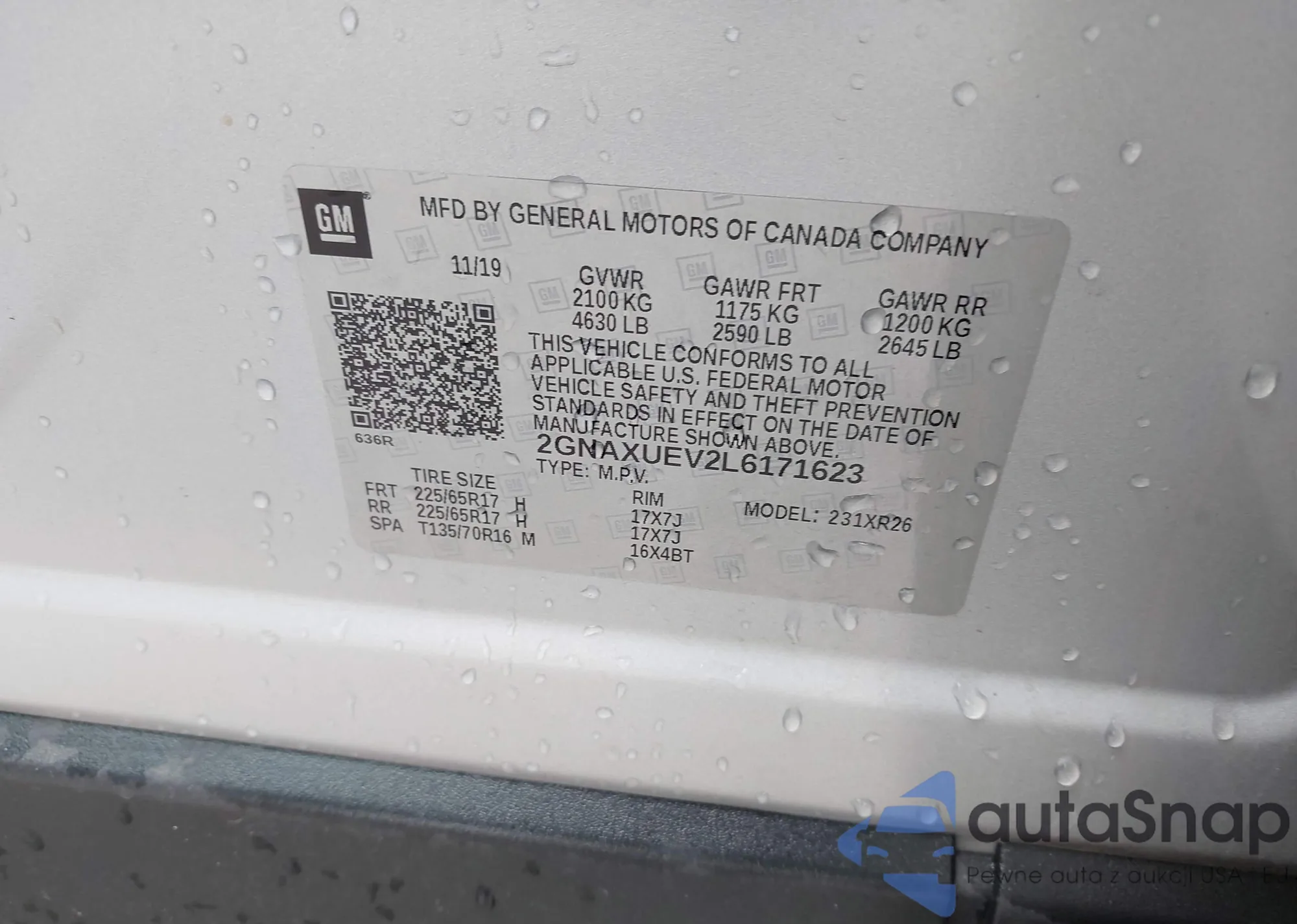 LOT: 43382874 VIN: 2GNAXUEV2L6171623