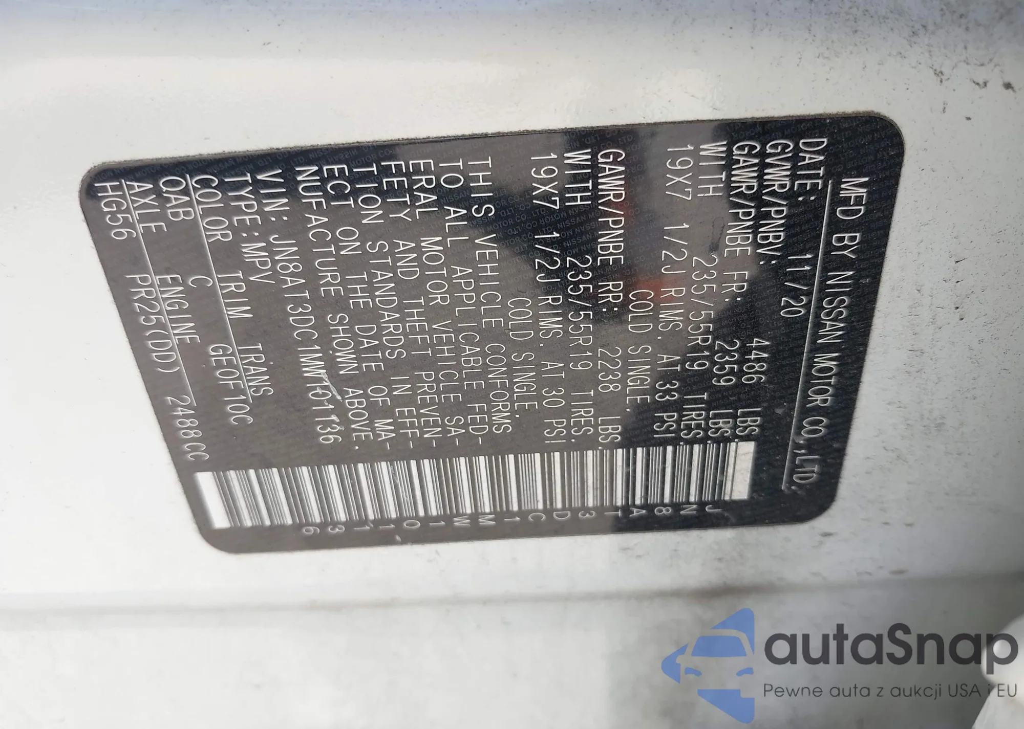 LOT: 43417893 VIN: JN8AT3DC1MW101136