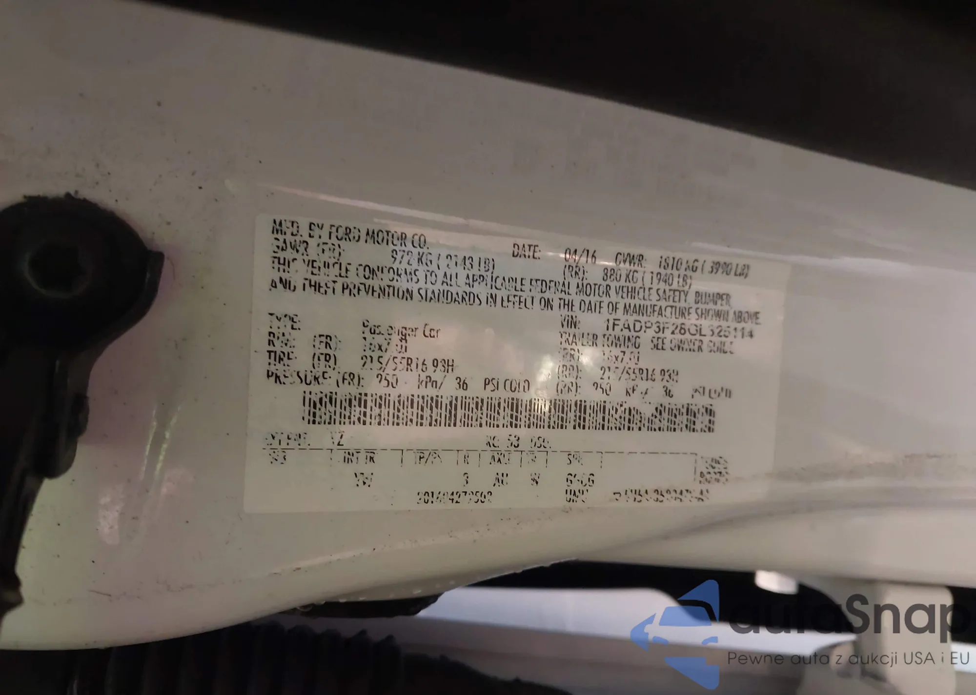 • VIN 1FADP3F28GL325114